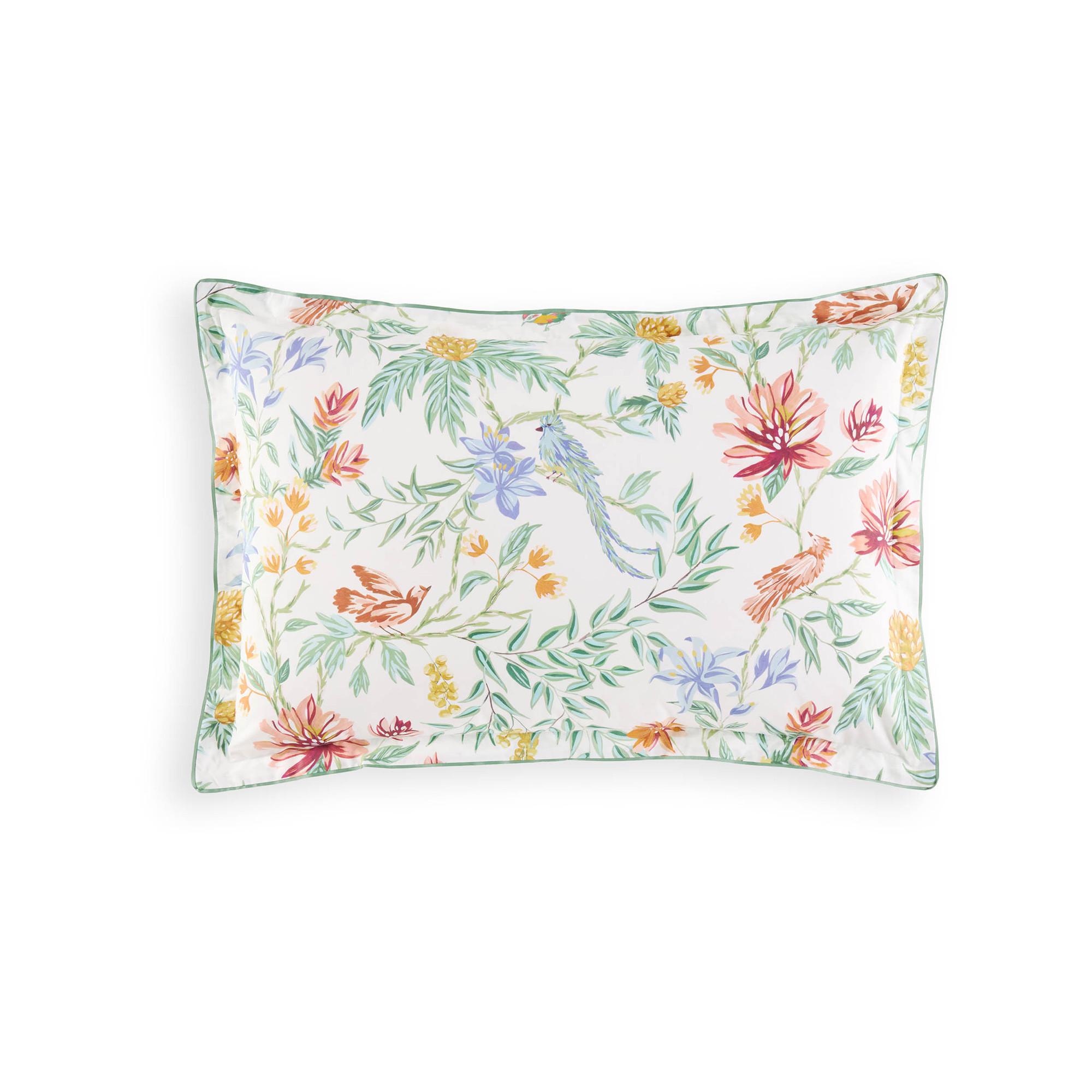 Découvrez la taie d'oreiller « Maya ». Avec son ravissant motif de fleurs et d'oiseaux colorés, cette housse confère à chaque pièce une atmosphère chaleureuse et accueillante.