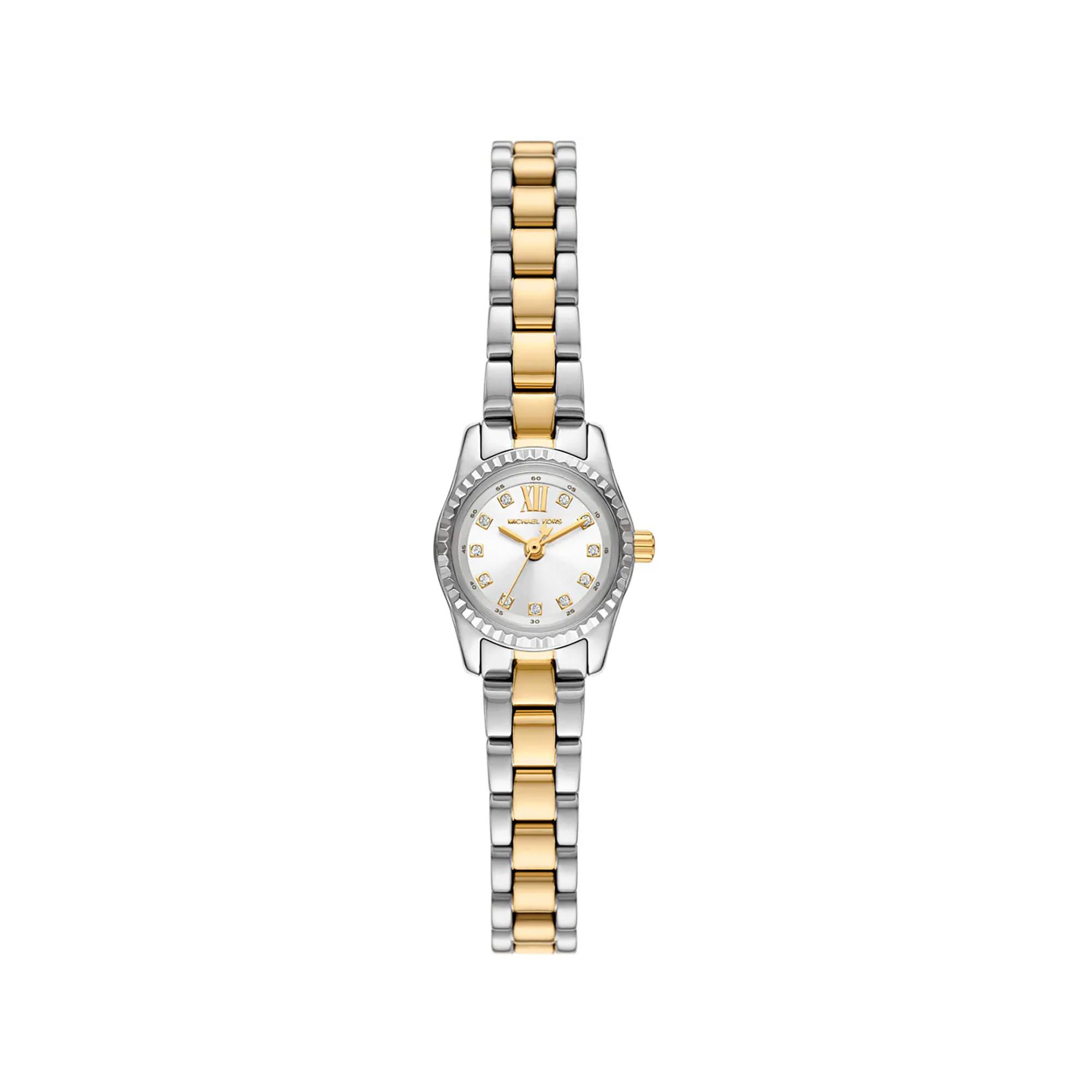 La montre Lexington allie un glamour quotidien à des accents dorés et des pavés étincelants. Fabriqué en acier inoxydable, ce modèle délicat se distingue par un cadran rond avec un cadre à facettes et un bracelet à maillons bicolore – parfait pour conférer une note élégante à chaque look de jour ou de soirée.