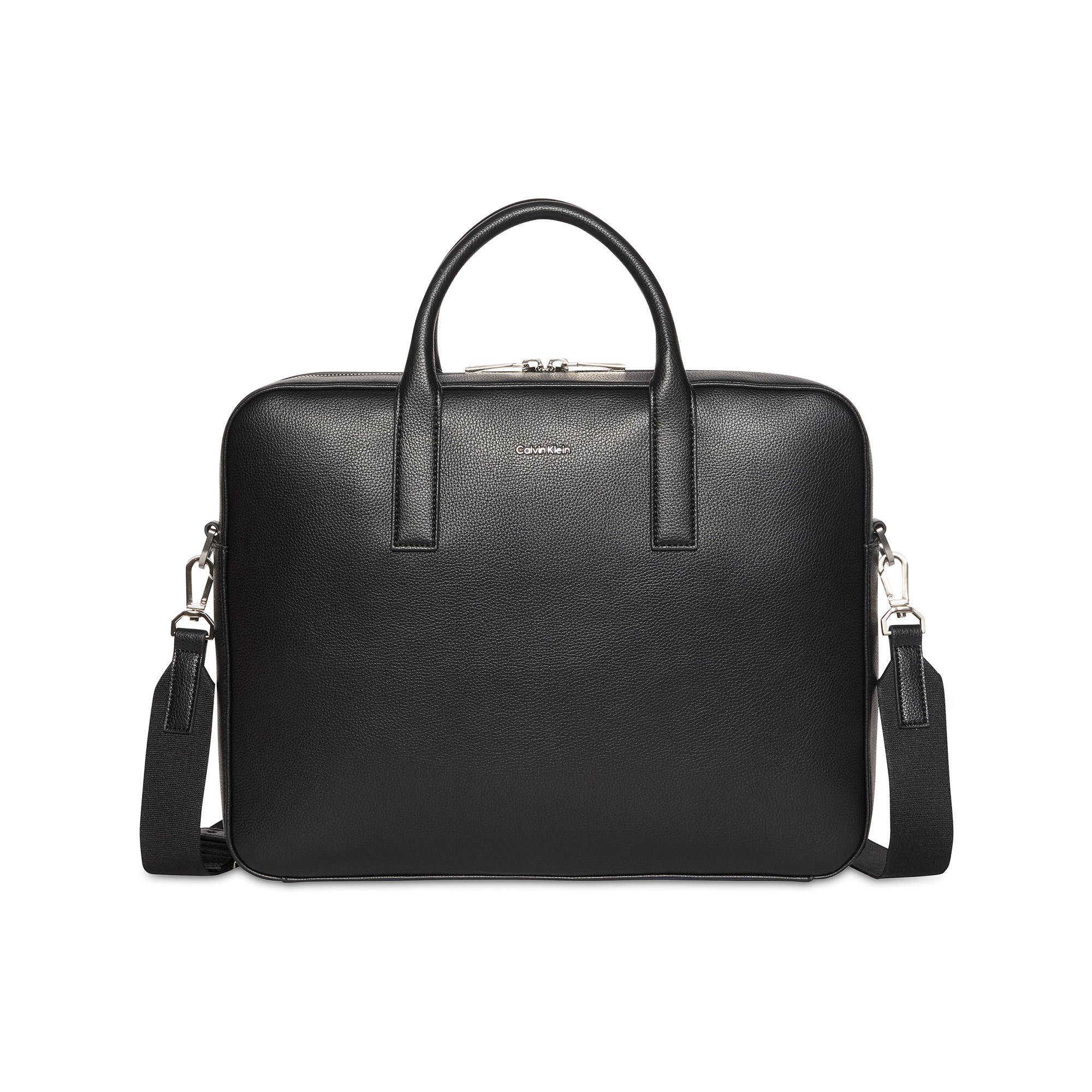 Ce porte-documents offre un design élégant et professionnel, parfait pour transporter l'essentiel avec style. Il présente un extérieur texturé et un logo proéminent sur le devant.