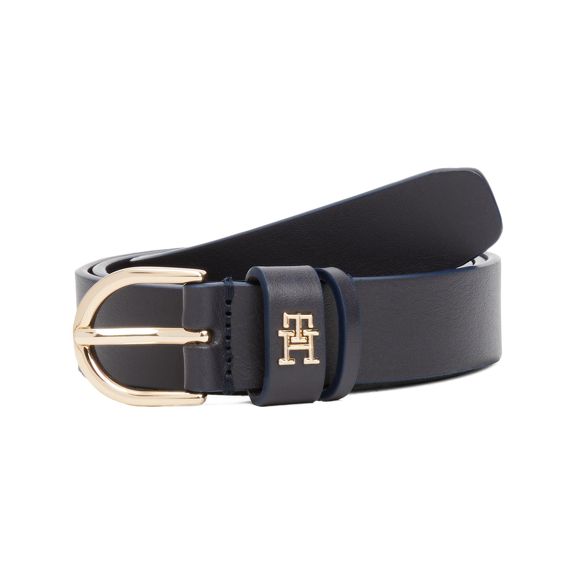 Les détails métalliques polis et la plaque monogramme TH donnent une esthétique luxueuse à cette ceinture épurée en cuir lisse.