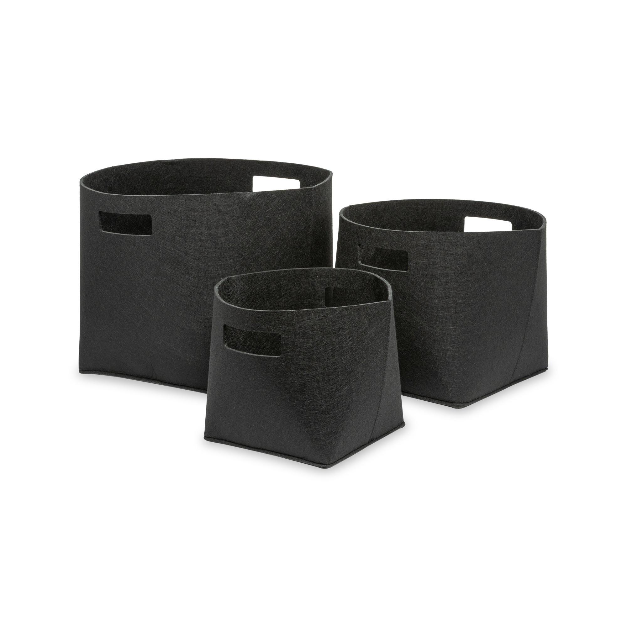 Cet ensemble de Manor se compose de trois paniers de rangement en feutre. Les boîtes rondes avec un plan carré enrichissent chaque concept d’habitation avec leur design contemporain et puriste grâce à la texture naturelle du matériau.