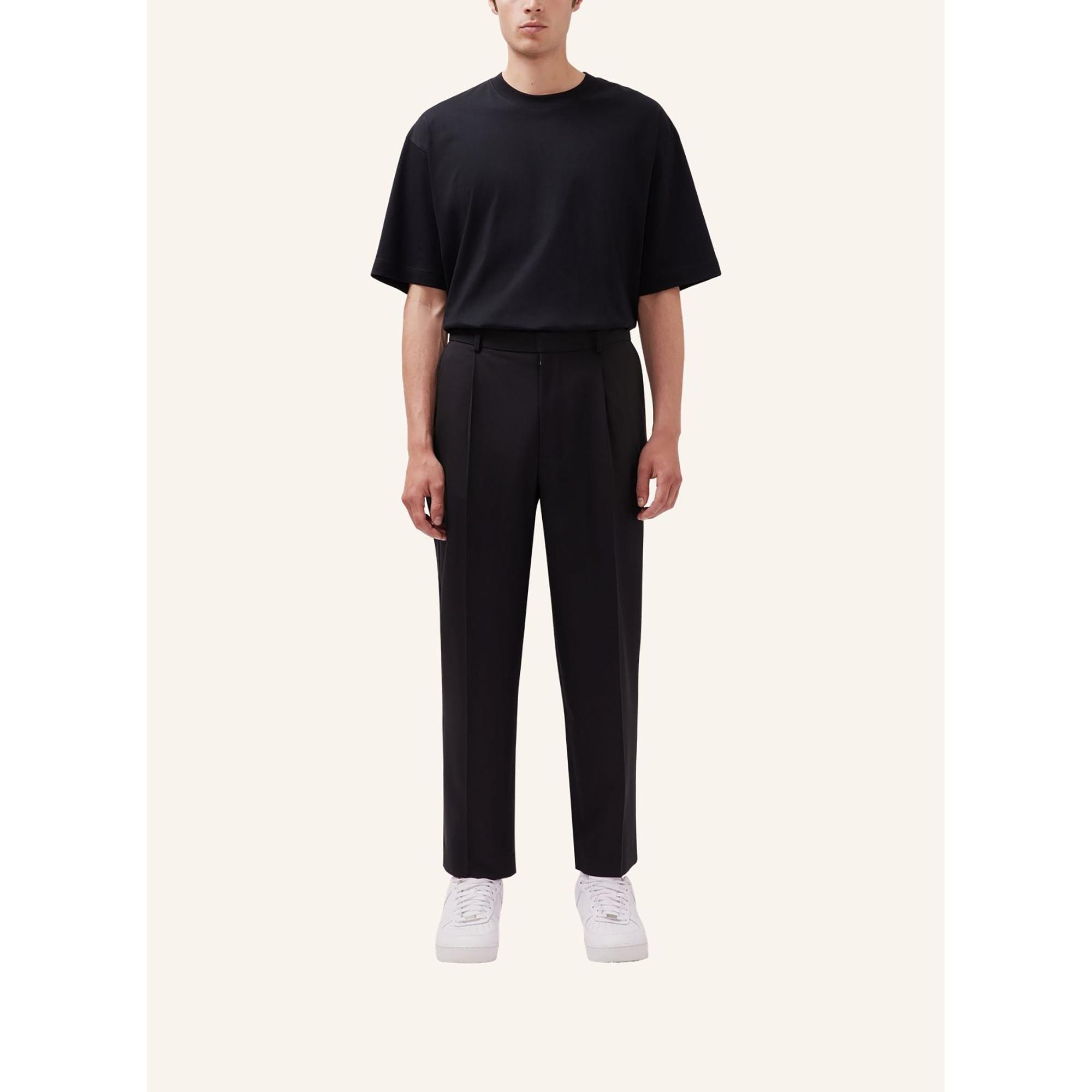 Ce pantalon présente un design classique avec un seul pli, offrant un ajout raffiné et polyvalent à toute garde-robe. Les lignes épurées et la coupe Regular Fit ajustée le rendent adapté à diverses occasions, des événements formels aux sorties décontractées-chic.