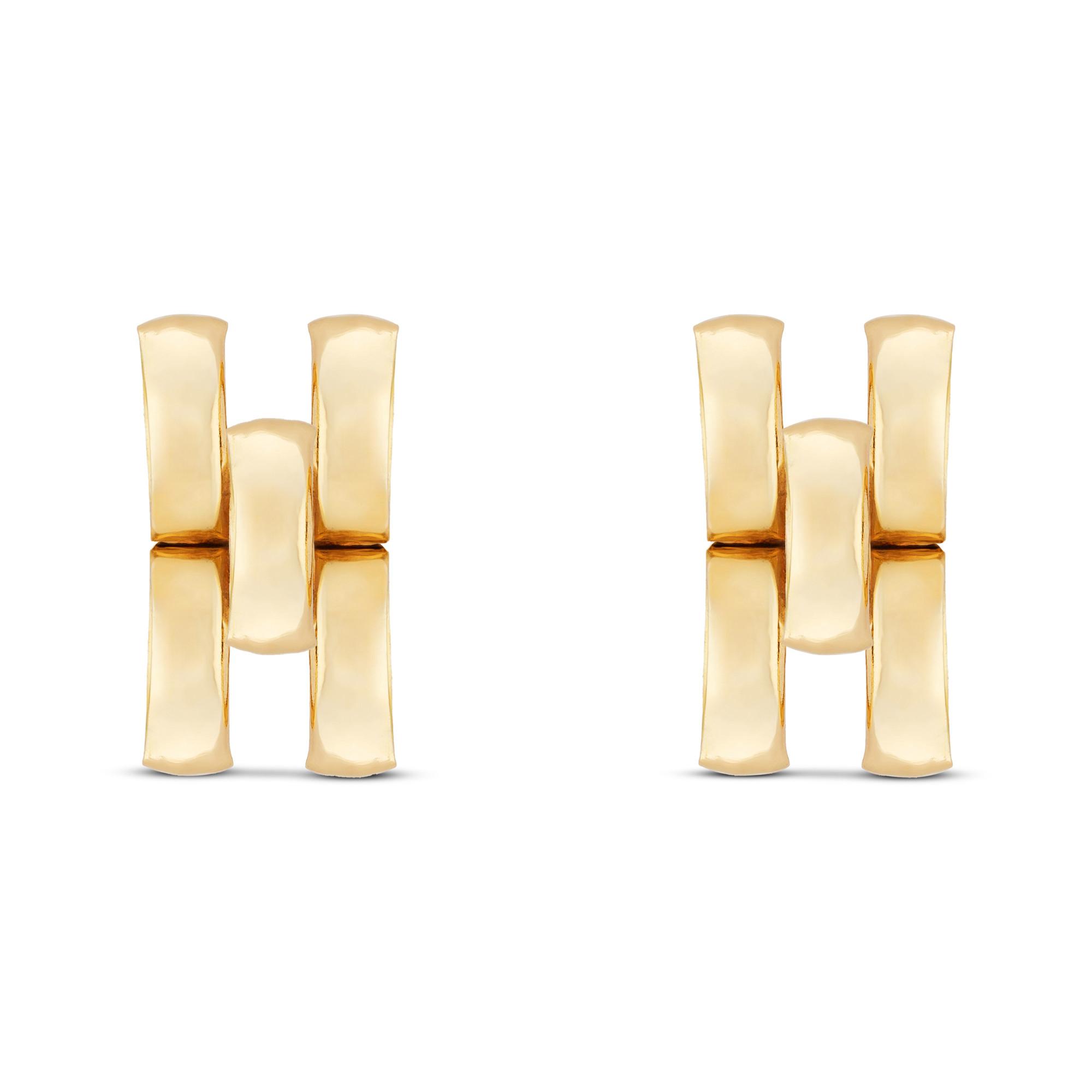 Ces élégants clous d’oreilles en or 9 carats séduisent par leur design géométrique moderne. Deux barres verticales sont reliées par un élément central, formant une composition raffinée à la surface polie. Le fermoir à tige assure un maintien sûr et un confort optimal – parfaits pour les grandes occasions ou pour un style quotidien sophistiqué.