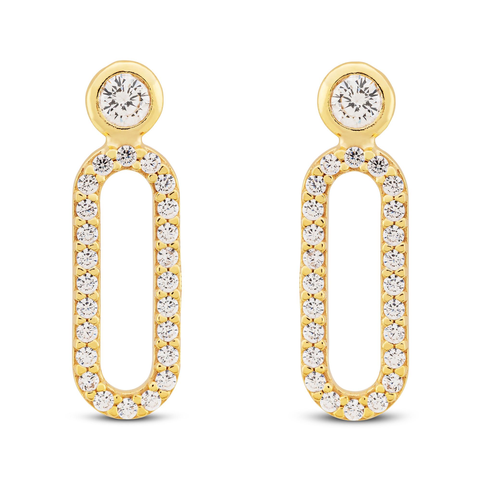 Ces clous d’oreilles raffinés en or 9 carats brillent par leur élégance. Une pierre en zirconia orne le clou rond, tandis qu’un pendentif ovale est serti de petits zirconia scintillants. Leur design harmonieux et leur fermoir à tige en font un choix idéal pour les occasions spéciales.
