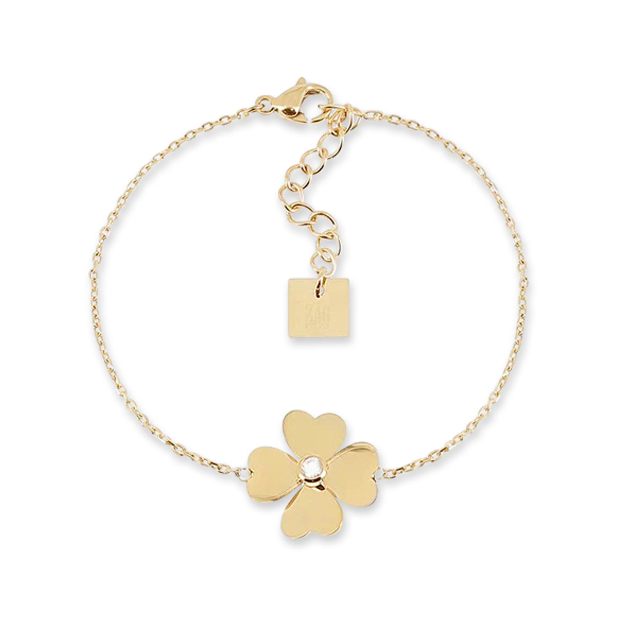Cette gourmette de Zag Bijoux est un bijou en filigrane avec un cœur et une élégance féminine. La chaînette avec une forme de fleur et une pierre décorative se ferme de manière élégante par un mousqueton, est réglable en largeur de manière minimale et a un charm de la marque sur le fermoir.