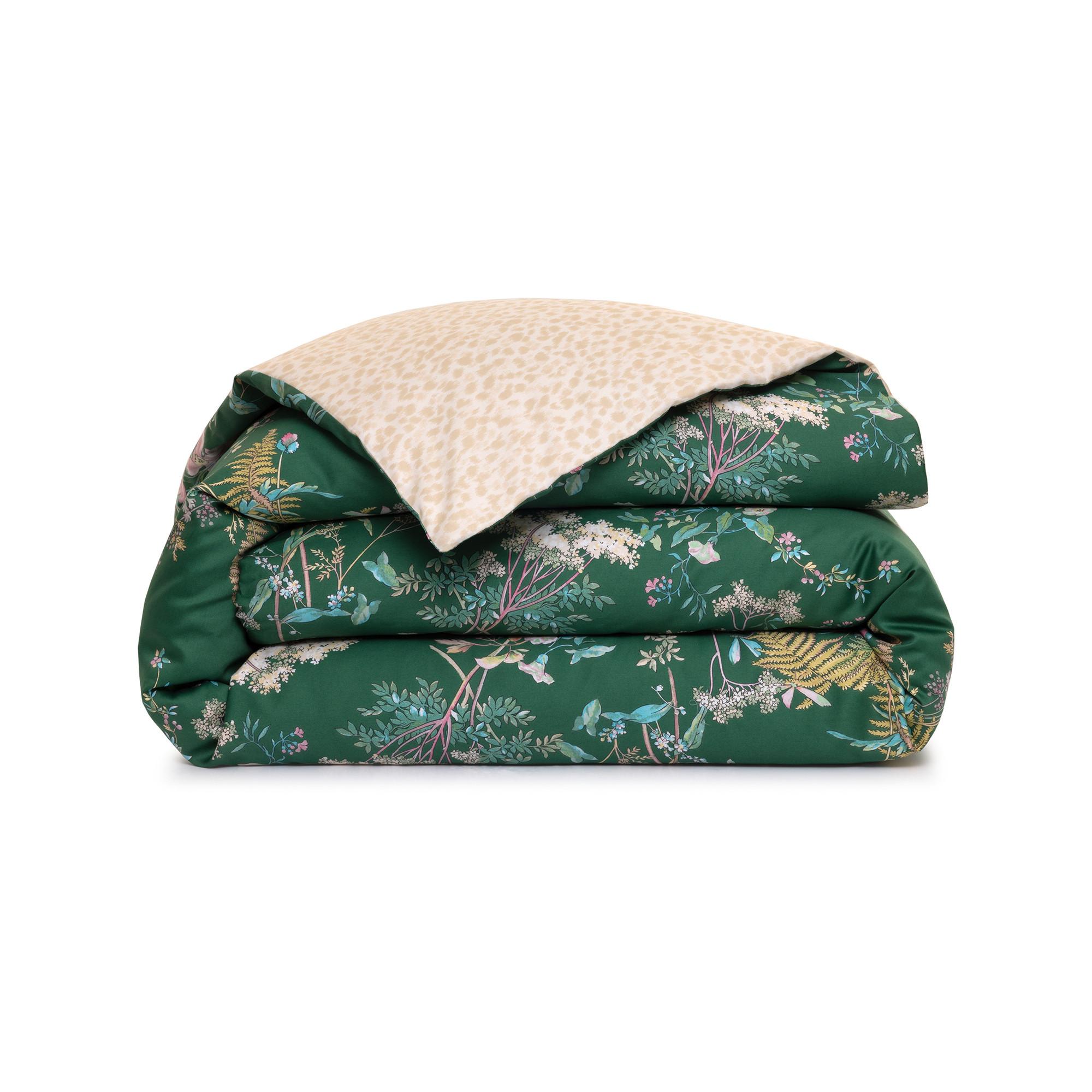 Un design artistiquement conçu sur un satin de coton décoratif apporte une atmosphère magique dans la chambre à coucher. La couette imprimée et réversible avec rabat présente un motif principal riche en détails en 15 couleurs, complété par un dessin d'envers harmonieux en 2 couleurs.
