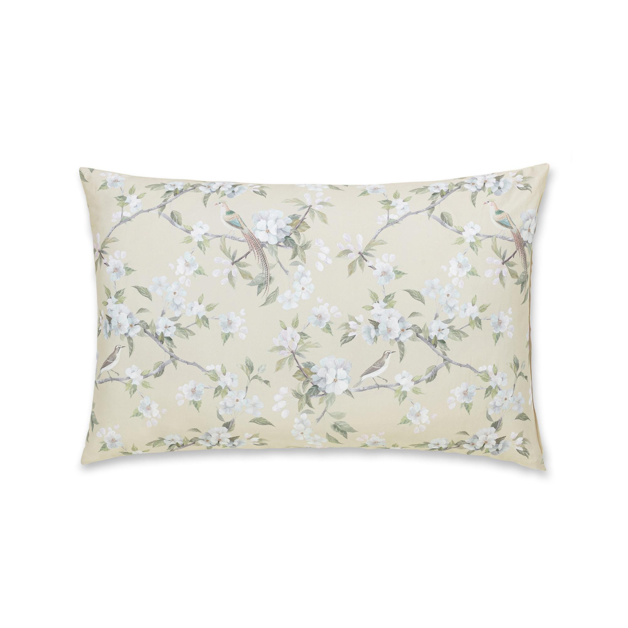 La taie d’oreiller « Pina » se présente avec un imprimé intégral floral avec des fleurs délicates et des motifs d’oiseaux sur le devant. Le dos est de couleur unie et assure un équilibre harmonieux dans le design. Une fermeture éclair dissimulée complète la finition de manière fonctionnelle.