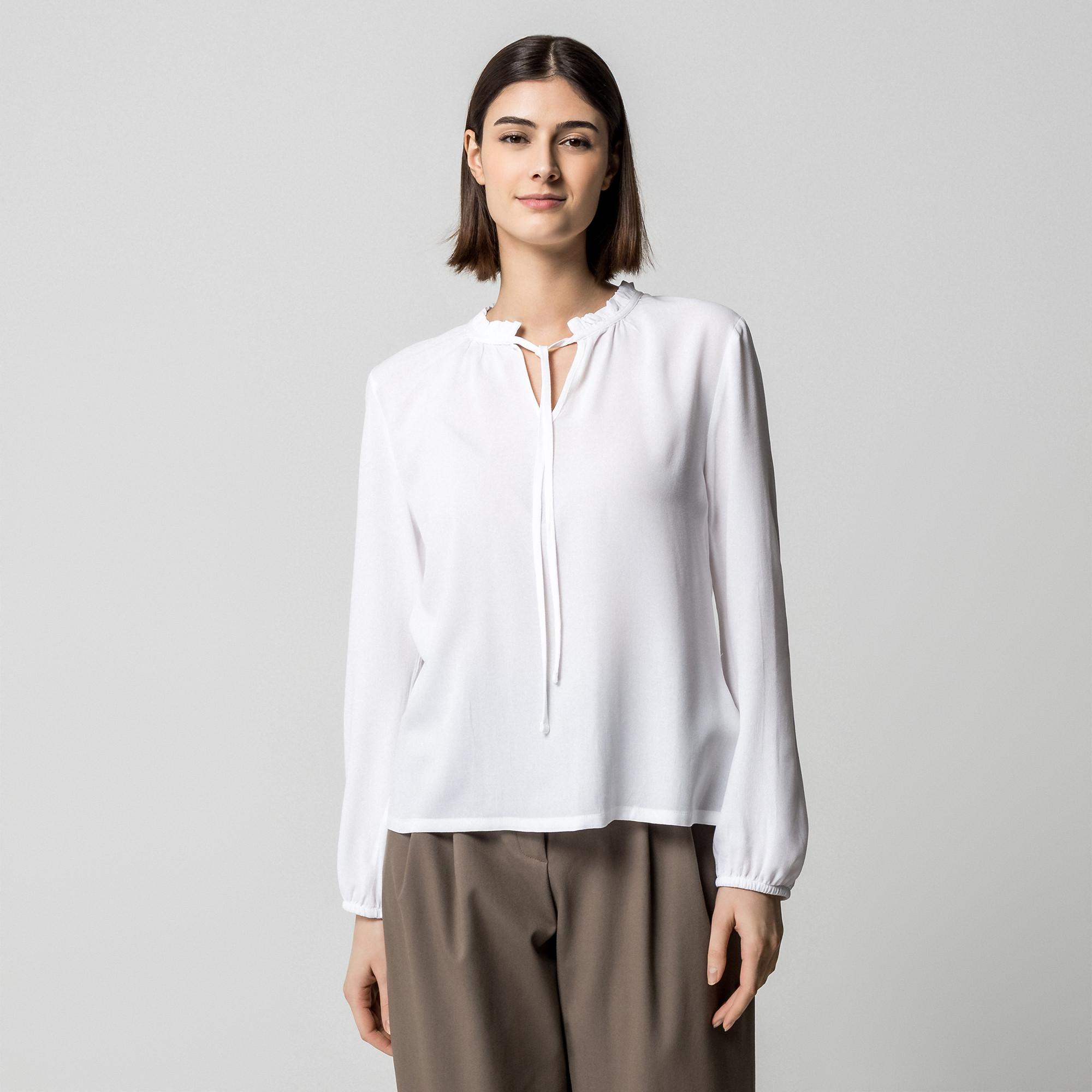Manor Woman Chemisier à manches longues avec col montant à volants