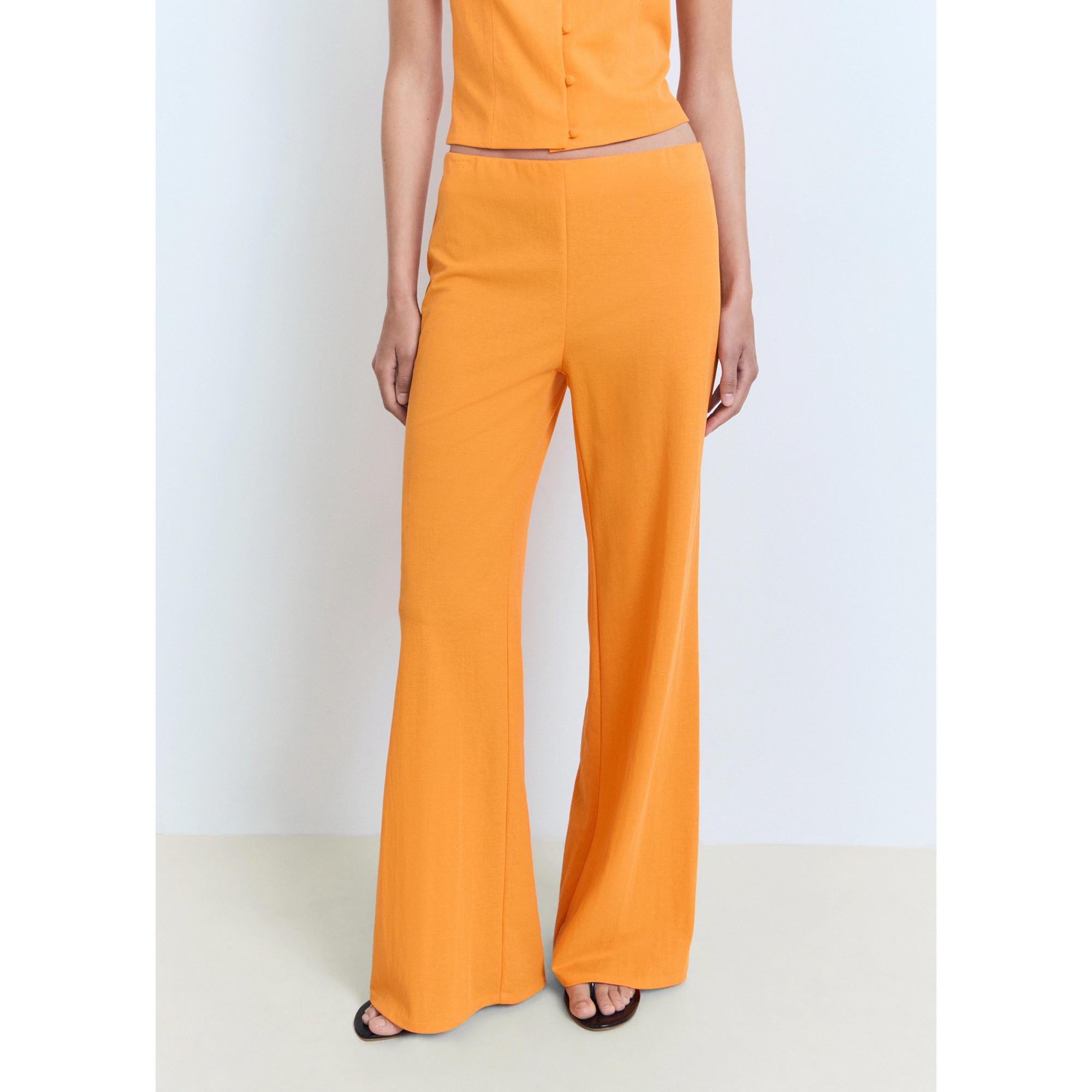 Ce pantalon droit est confectionné dans un tissu fluide en mélange de coton et présente un design long avec une taille mi-haute. La ceinture élastique assure un confort optimal, tandis que l'absence de fermeture crée un look minimaliste. Idéal pour un look décontracté complet.