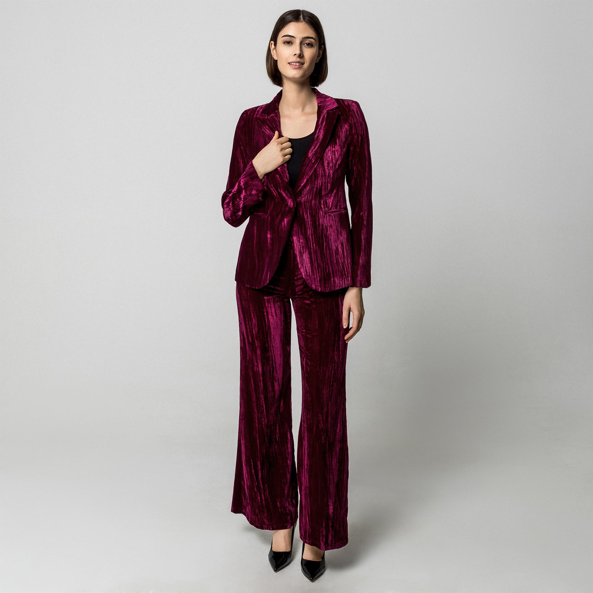 Ce blazer offre un look sophistiqué avec sa texture velours. Il présente un col à revers classique et une fermeture à un bouton, ce qui en fait un ajout polyvalent à toute garde-robe. Le design comprend deux poches avant pour plus de praticité et une finition raffinée.