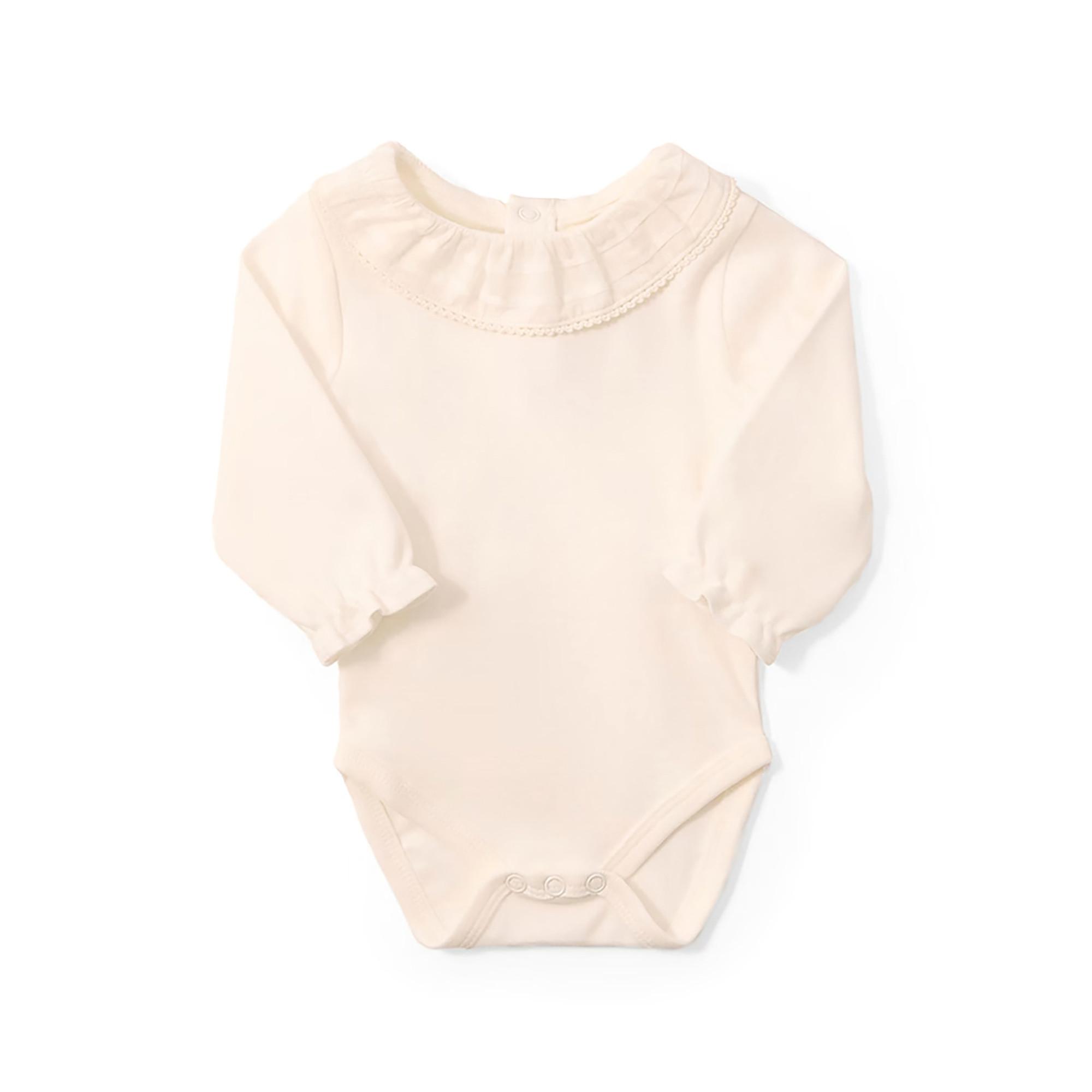 Ce body de Sfera est confectionné en 100 % coton et possède un tissu lisse avec un col plissé. Il a un bouton-pression dans le dos.