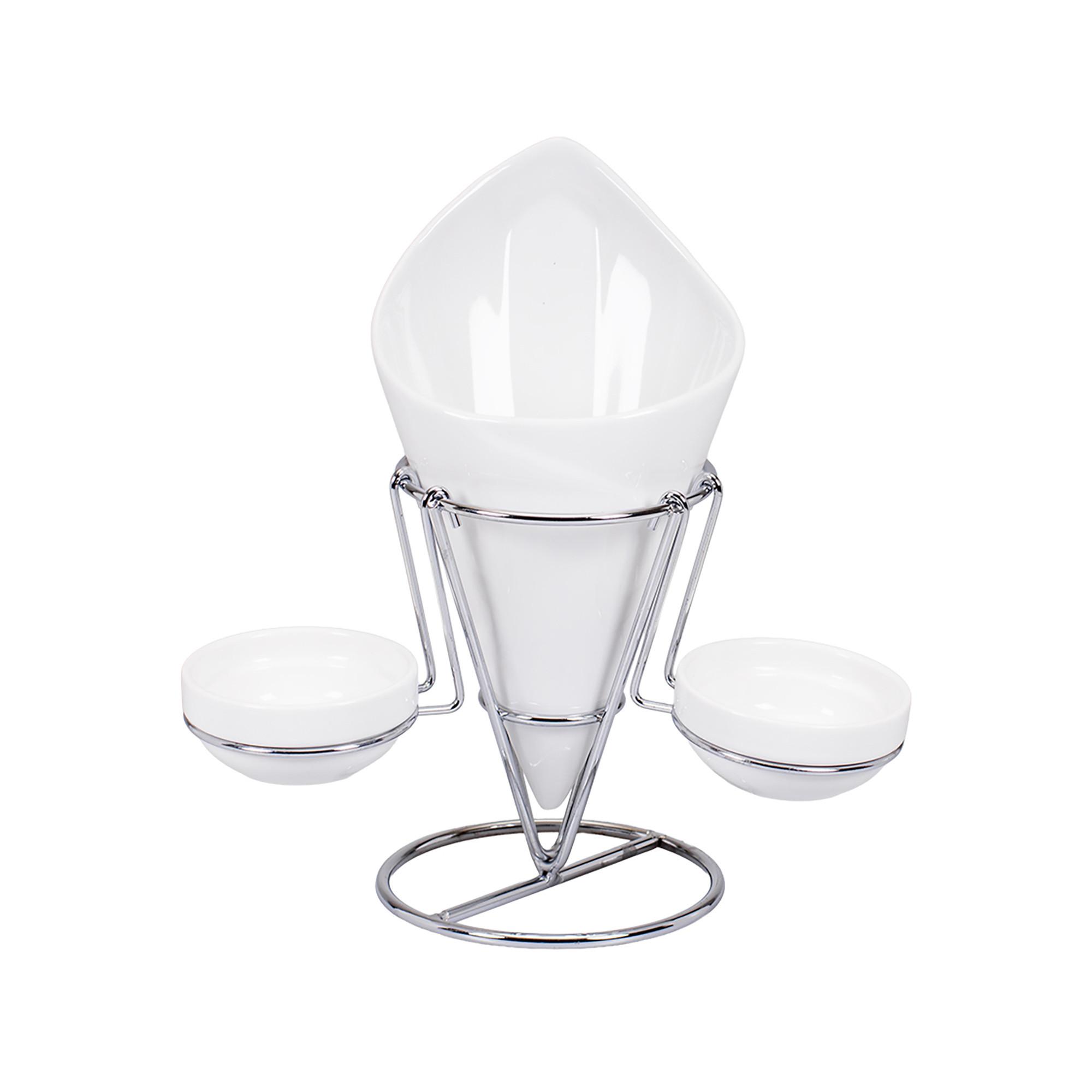 Porte-frites stylé avec coupelle en céramique et coupelles à dips - parfait pour la prochaine portion de frites, Idéal pour la maison ou les fêtes.