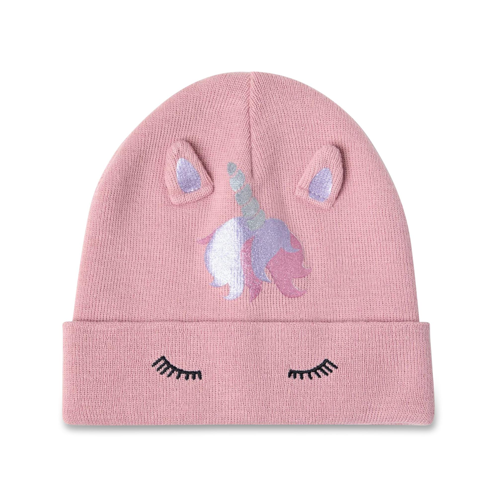 Bonnet avec motif licorne et oreilles cousues pour un look ludique. Le bord plié assure un confort optimal.