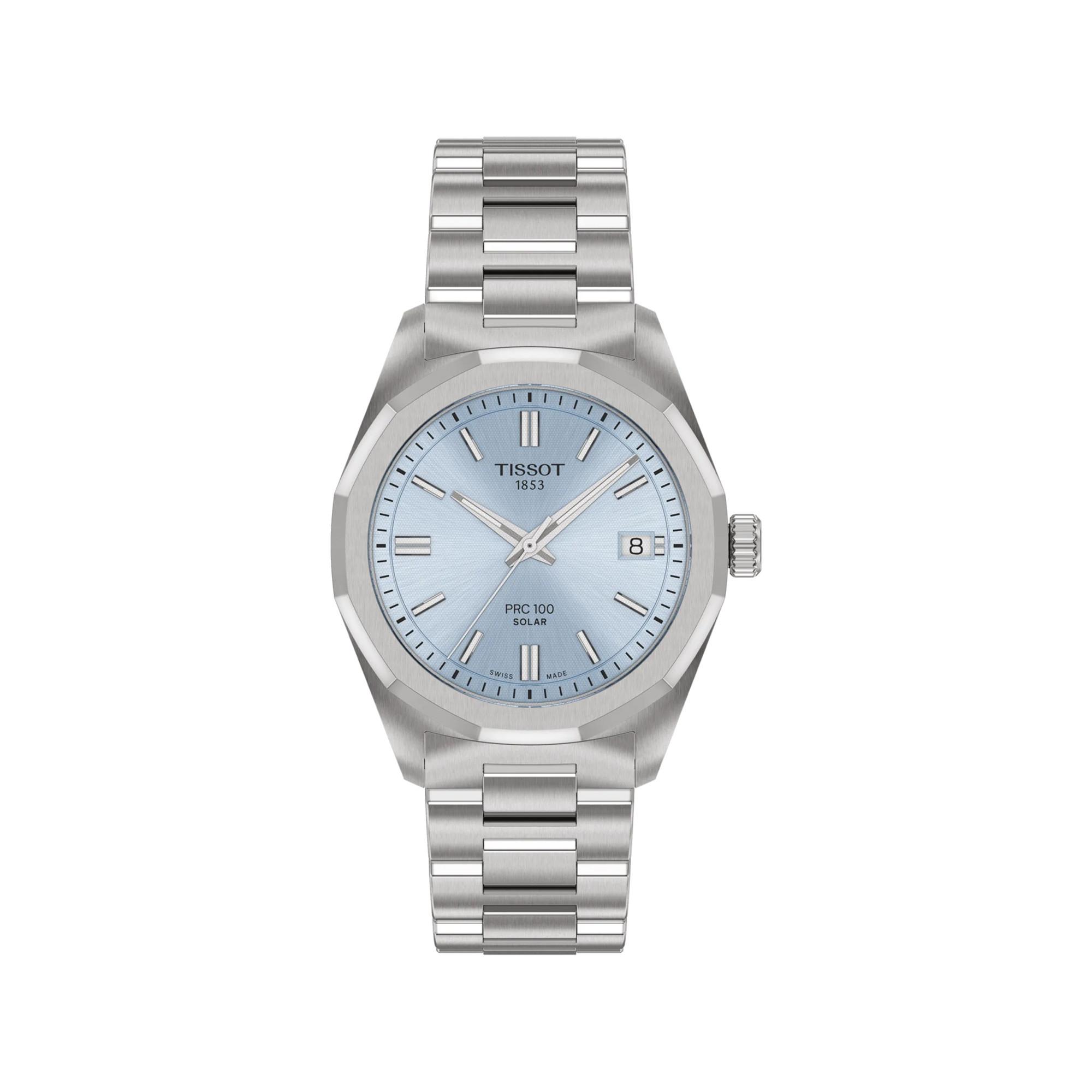 La PRC 100 Solar Quartz de Tissot convainc par un boîtier de 34 mm en acier inoxydable 316L robuste et une technologie solaire moderne – tout à fait dans l’esprit de la collection Classic Contemporary. Le verre saphir résistant aux rayures et l’étanchéité à 10 bars en font un compagnon fiable dans la vie quotidienne. Fonctionnement solaire avec 3 ans de garantie internationale Bracelet avec système de changement rapide pratique Qualité suisse avec un design élégant