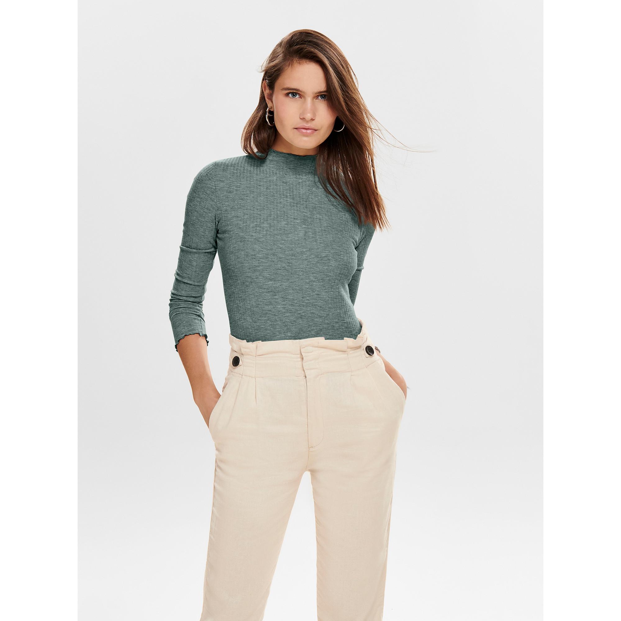 ONLY T-Shirt Manches Longues Col Montant Côtelé