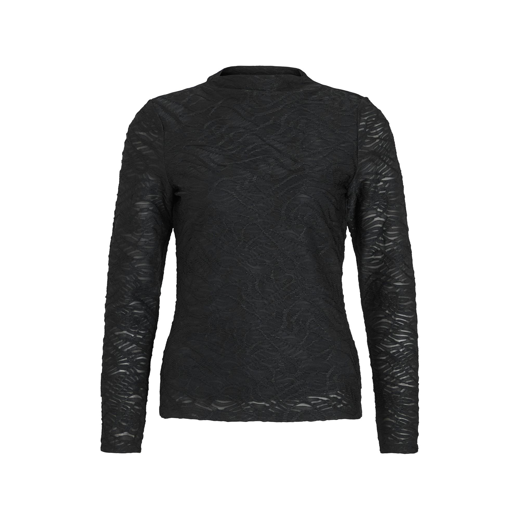 Ce shirt à manches longues en tissu mesh séduit par son motif captivant, qui apporte une touche originale au look. Le col montant et la coupe ajustée soulignent une silhouette contemporaine.