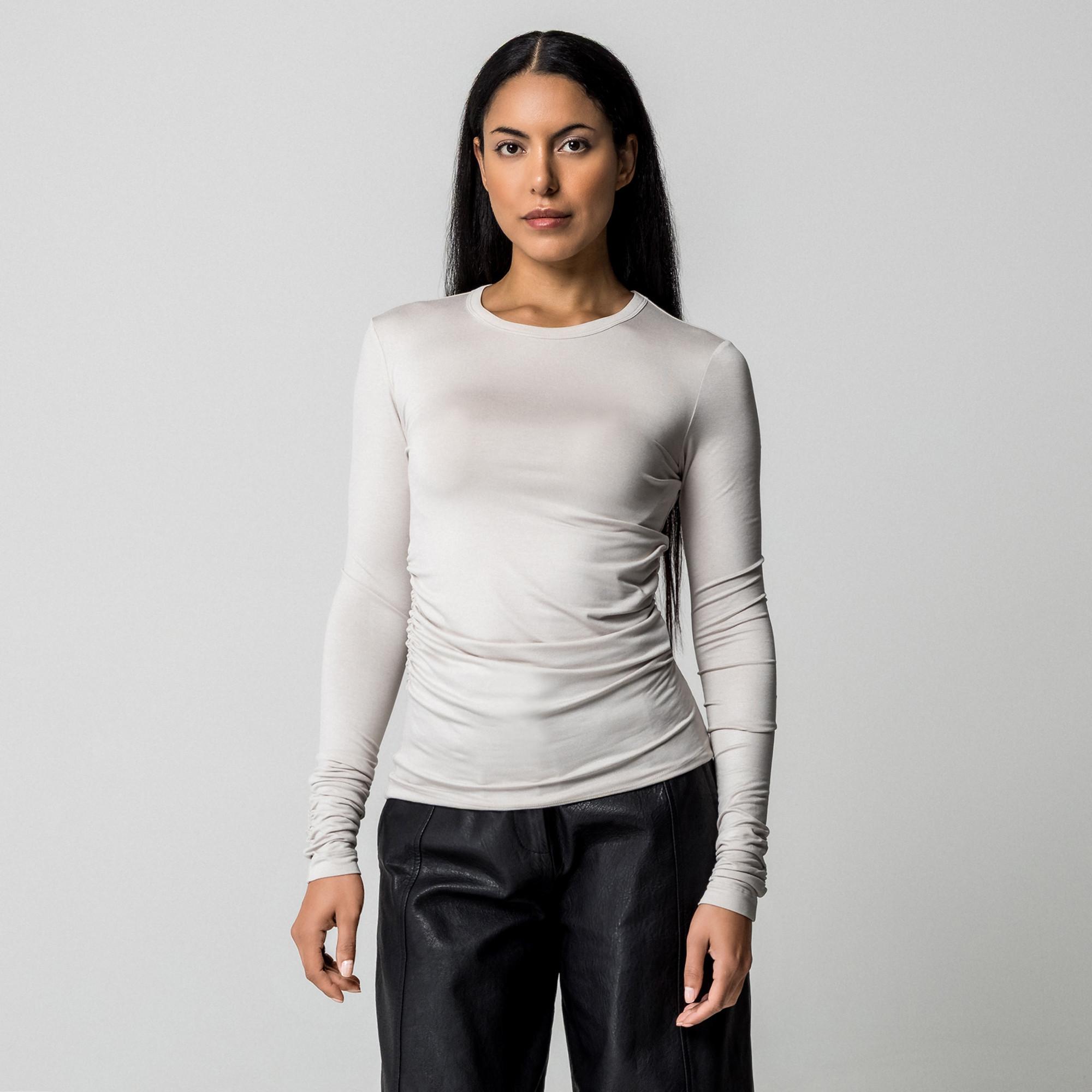 Ce t-shirt élastique en jersey de viscose léger a un ajustement fluide qui assure un tombé délicat sur les côtés et les manches.