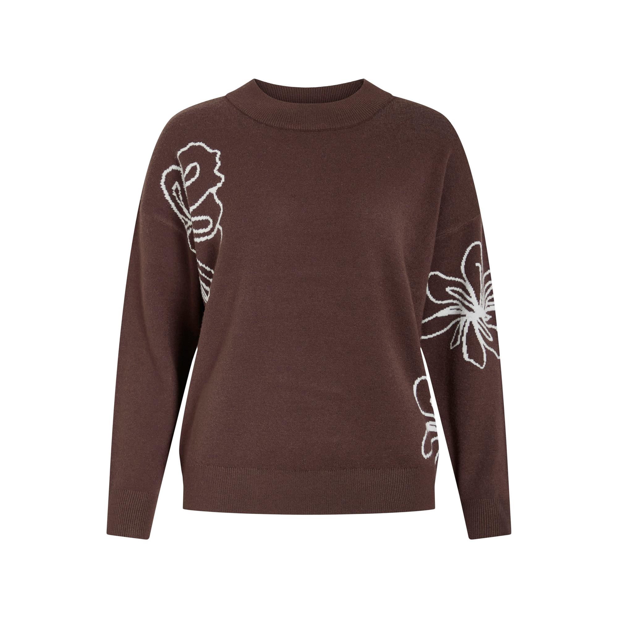 Ce pull en maille présente une encolure ronde et un motif floral contrasté. Sa coupe ample et sa texture délicate apportent une touche féminine et contemporaine.