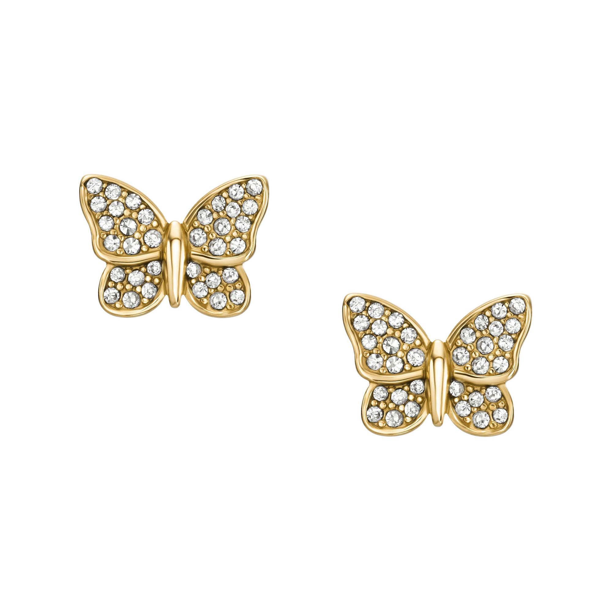 Avec la collection Radiant Wings, Fossil présente des clous d’oreilles délicats en acier inoxydable doré, qui montrent des papillons en nacre scintillante. Les gravures fines et les pierres de verre étincelantes confèrent au design un aspect élégant et symbolique. Acier inoxydable doré avec de fins détails Motif papillon en nacre élégante Accents avec des pierres de verre étincelantes