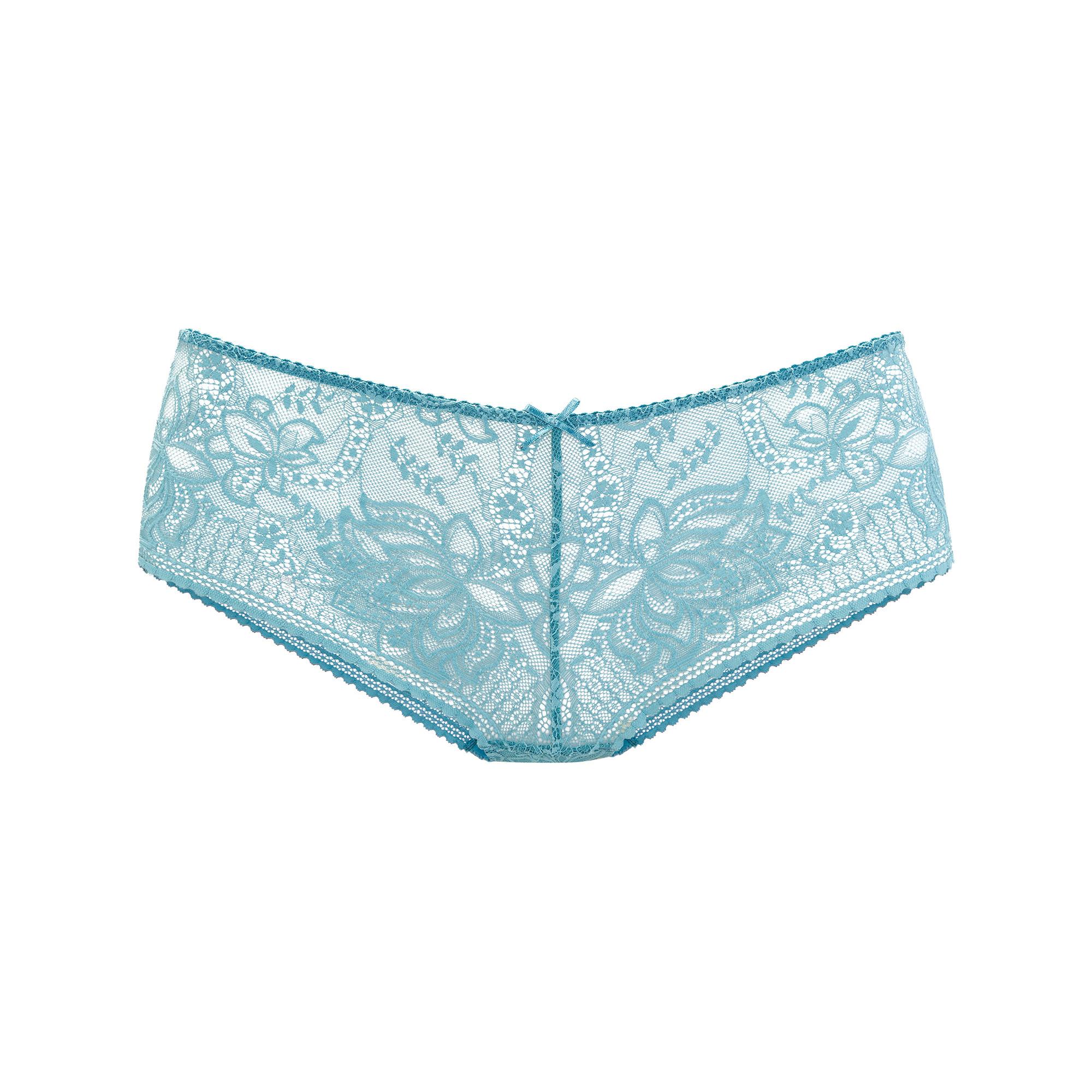 Cette panty se distingue par sa coupe couvrante et sa dentelle délicate, légèrement transparente, au motif floral. Un joli nœud décoratif au centre avant et un entrejambe en coton intégré offrent un confort supplémentaire.
