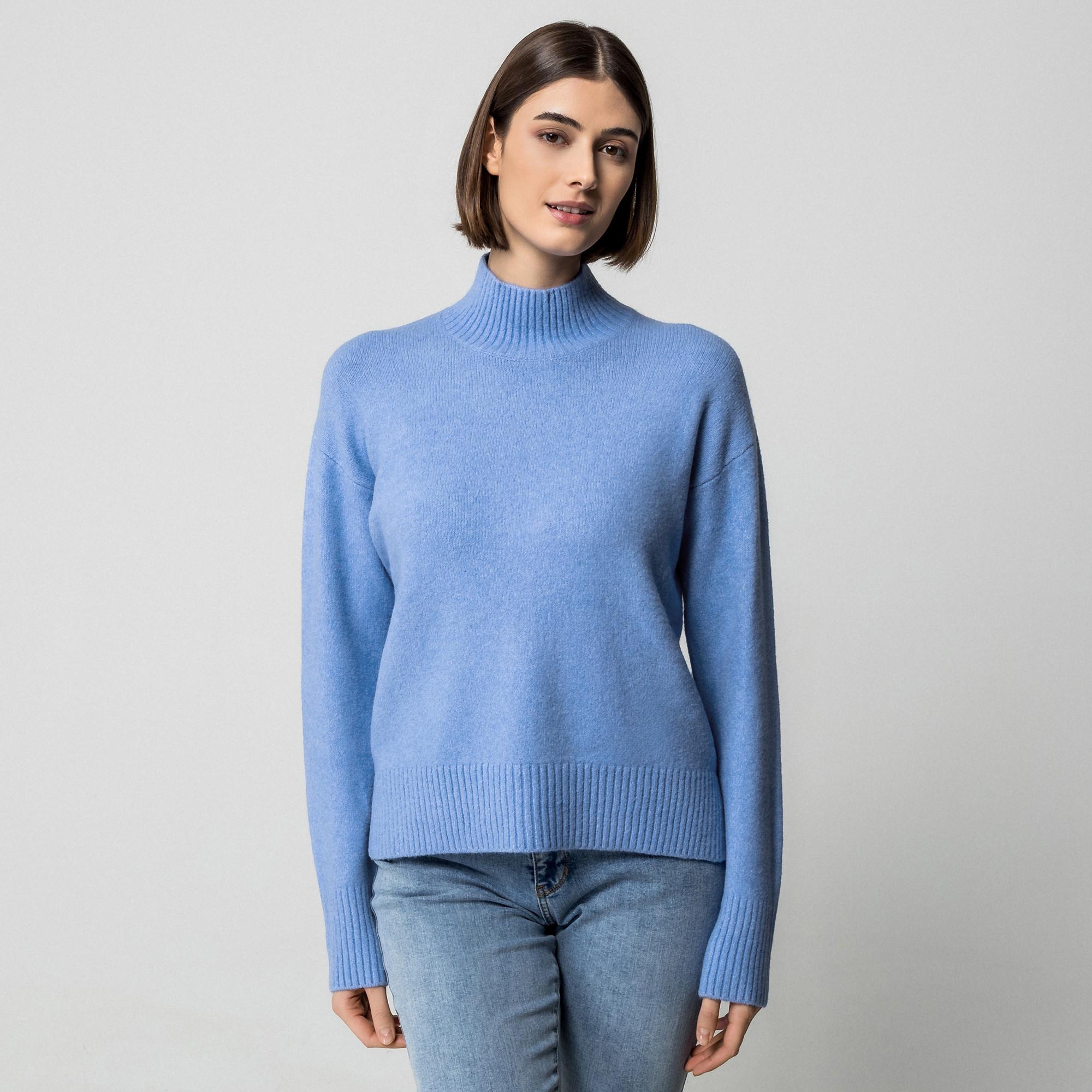 Ce pull en tricot décontracté présente une coupe relax, offrant un design confortable et élégant. Le col montant et les manches longues apportent une finition classique, en faisant un ajout polyvalent à toute garde-robe.