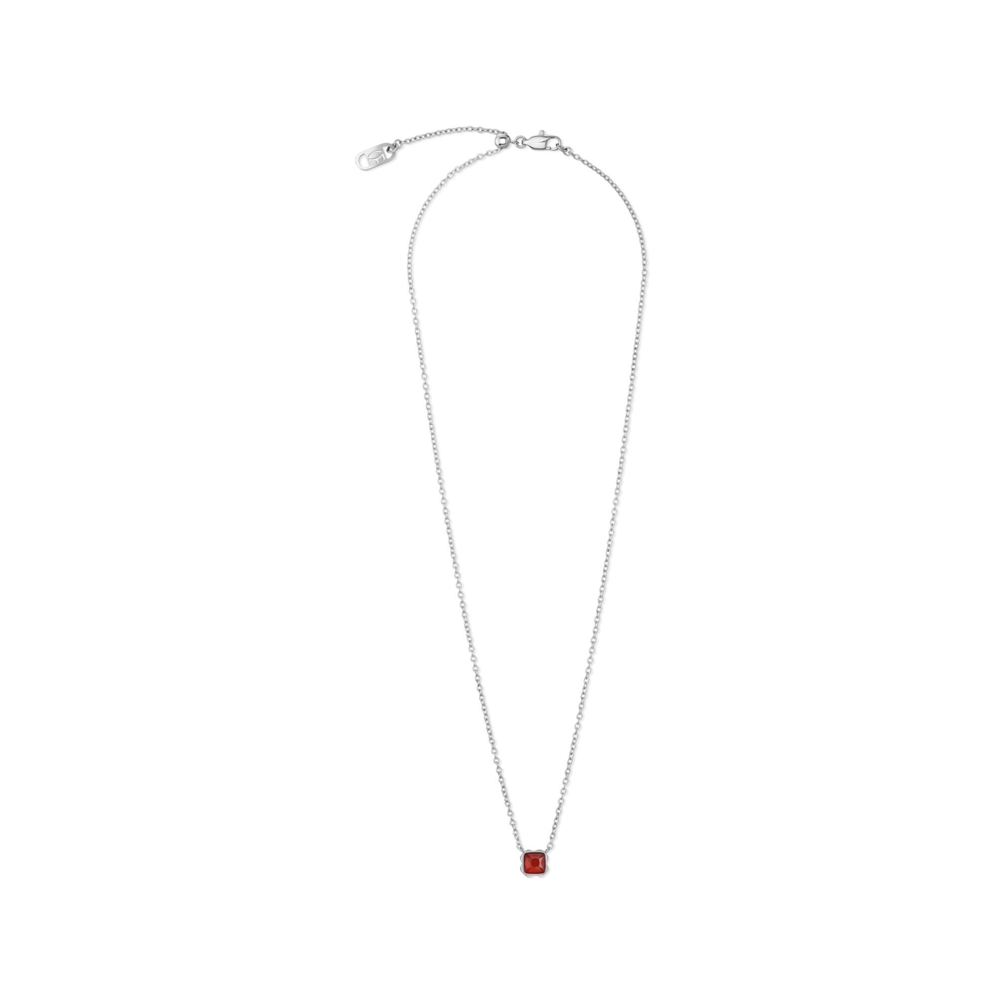 Birthstone January Necklace Agate Silver présente une agate rouge intense
