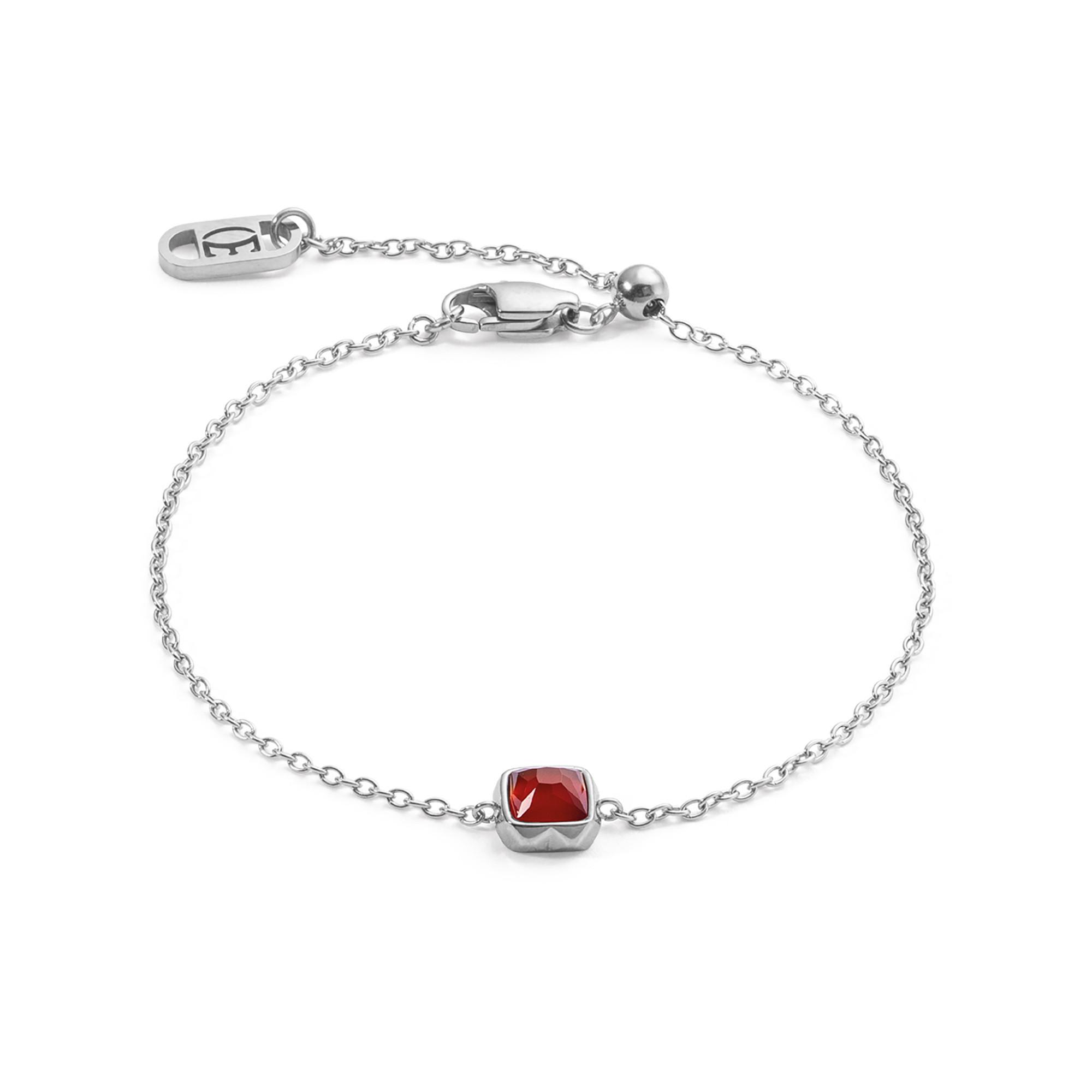 Birthstone January Bracelet Red Agate Silver présente une agate rouge intense