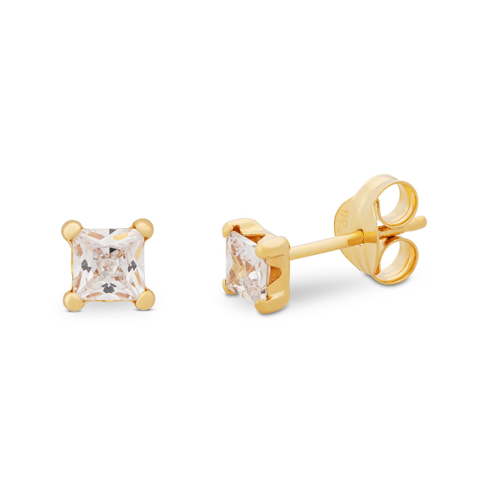 Ces clous d’oreilles de Caramel en or jaune 18 carats avec des pierres de zirconium ne font pas seulement briller les yeux des enfants. Le design carré est rafraîchissant et polyvalent. Les boucles d’oreilles sont livrées dans une boîte cadeau robuste, dans laquelle le nounours Caramel avec un coussin à bijoux se sent également à la maison.
