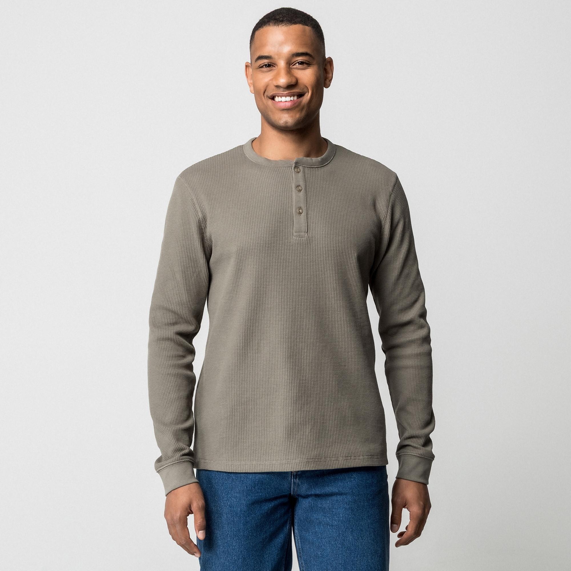 Ce pull à manches longues présente un col Henley classique avec une patte de boutonnage, offrant une option polyvalente et confortable pour un usage quotidien. Le tissu texturé apporte un intérêt visuel subtil et un toucher doux.