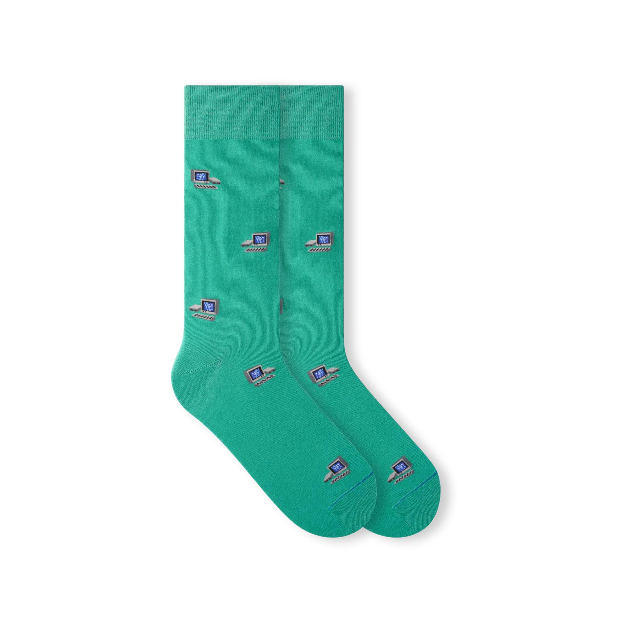Ces chaussettes hauteur mollet présentent un motif d'ordinateur ludique, ajoutant une touche unique à toute tenue. Le design assure un ajustement confortable pour un usage quotidien.