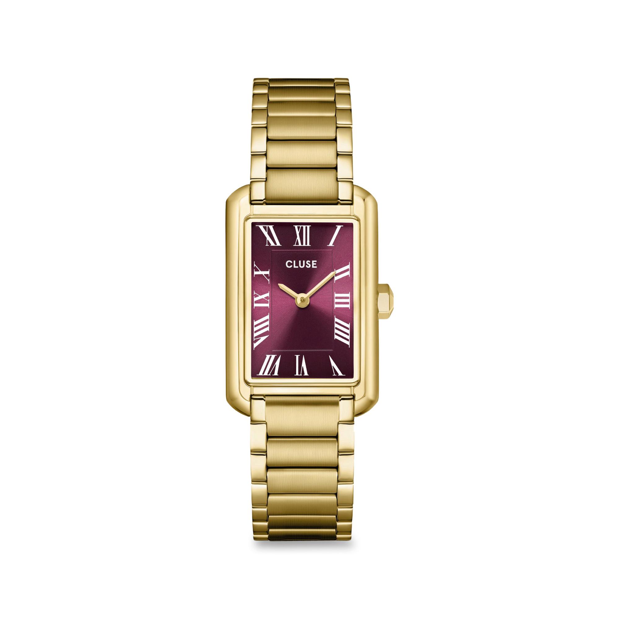 Avec la Belisenna, la marque Cluse présente une montre pour femmes élégante avec un boîtier rectangulaire de 21 mm en or et un bracelet en acier inoxydable doré. Le cadran bordeaux lui confère un accent de couleur raffiné et en fait un compagnon élégant pour toutes les occasions. boîtier rectangulaire, 21 mm bracelet en acier inoxydable doré, 14 mm élégant cadran bordeaux
