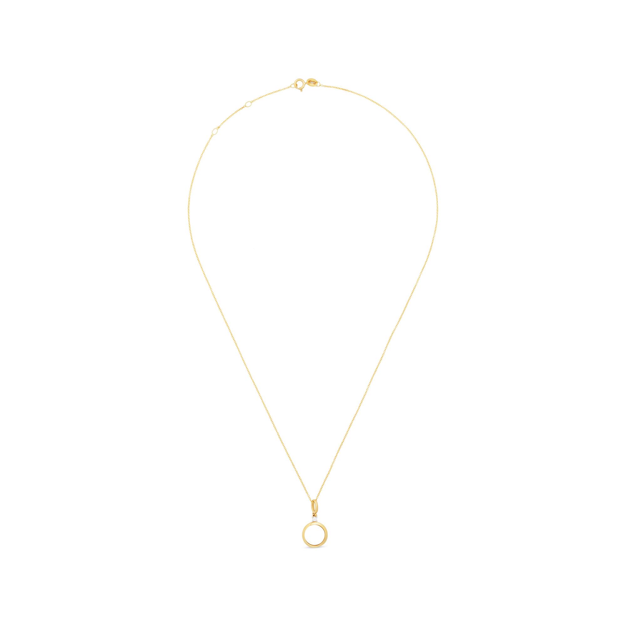 Cette chaîne de Puro est un bijou en filigrane en or 18 carats avec un pendentif unique qui porte une perle d’eau douce sur un anneau couronné d’un diamant. La chaîne est de largeur réglable et se ferme par un fermoir à ressort.