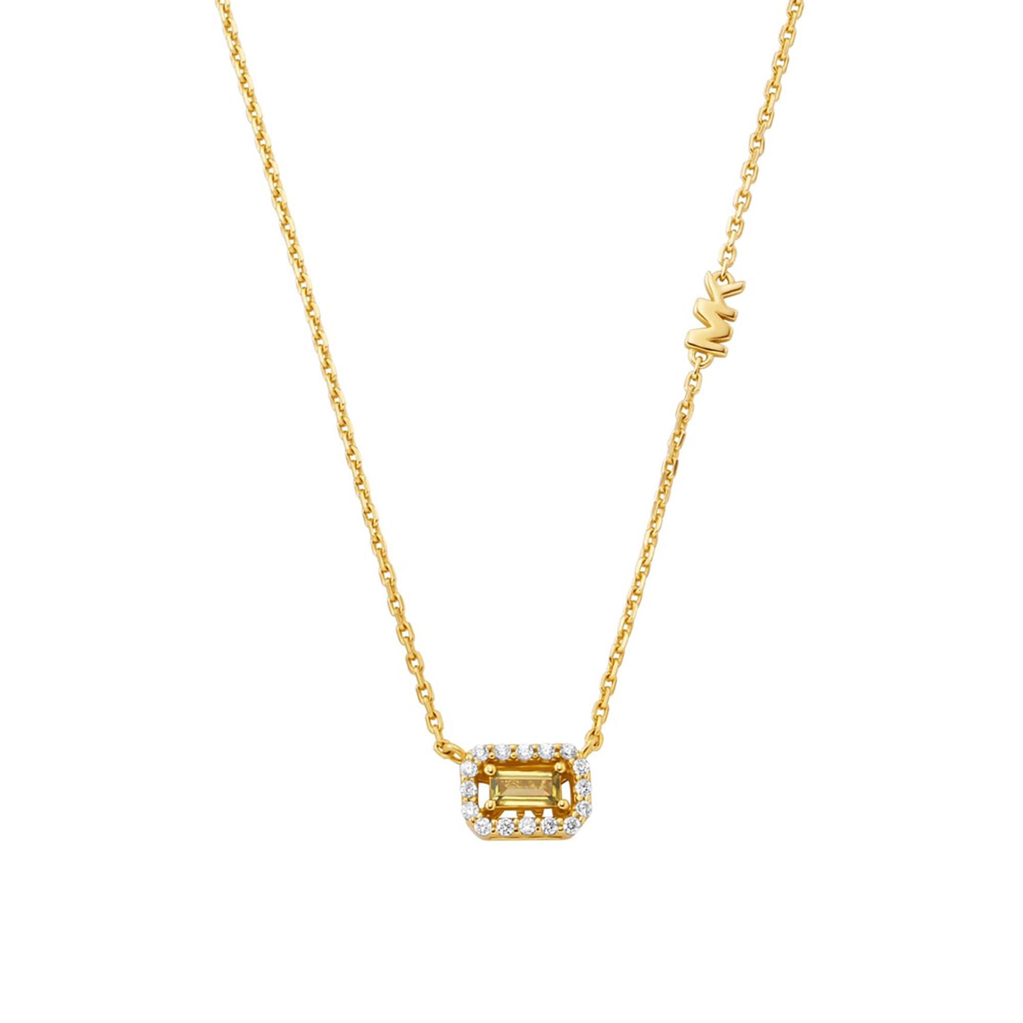 Le collier Kors Brilliance de Michael Kors apporte luxe et élégance à votre quotidien. Le collier en argent sterling 925 plaqué or 14 carats est orné de zircons synthétiques couleur péridot taille émeraude et se règle facilement grâce à un fermoir à ressort.