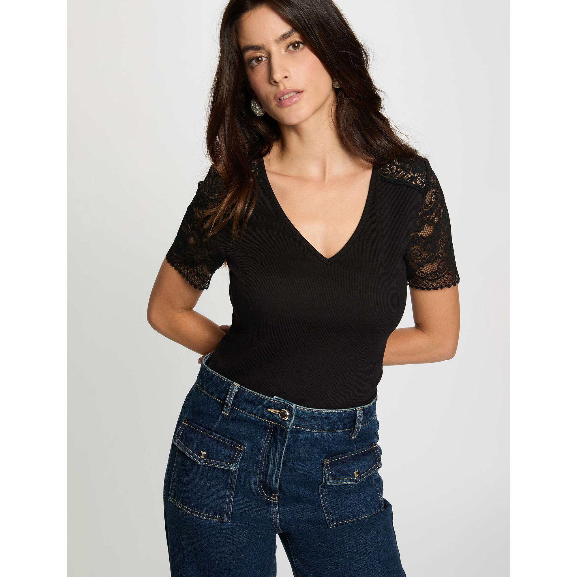 Ce haut en dentelle combine des détails féminins avec une silhouette moderne. L'encolure en V et le détail du dos ouvert apportent une touche élégante, tandis que la forme cintrée met délicatement en valeur la silhouette. Il est idéal pour des tenues stylées avec une touche sensuelle.