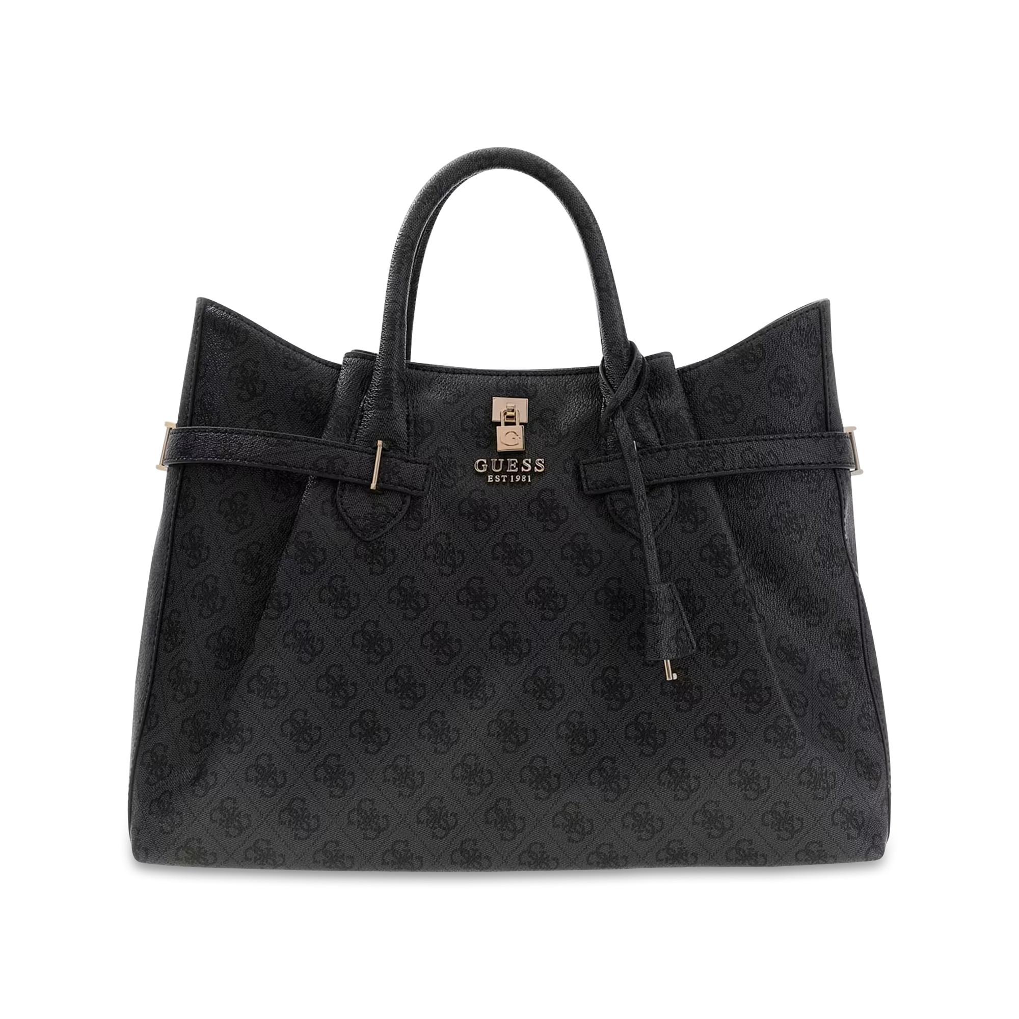 Ce sac cartable présente un design sophistiqué avec un motif logo proéminent sur l'ensemble. Le sac est équipé de deux poignées robustes pour un transport confortable et d'une fermeture sécurisée du compartiment principal. Des sangles latérales décoratives avec des détails de boucle ajoutent à son attrait élégant.