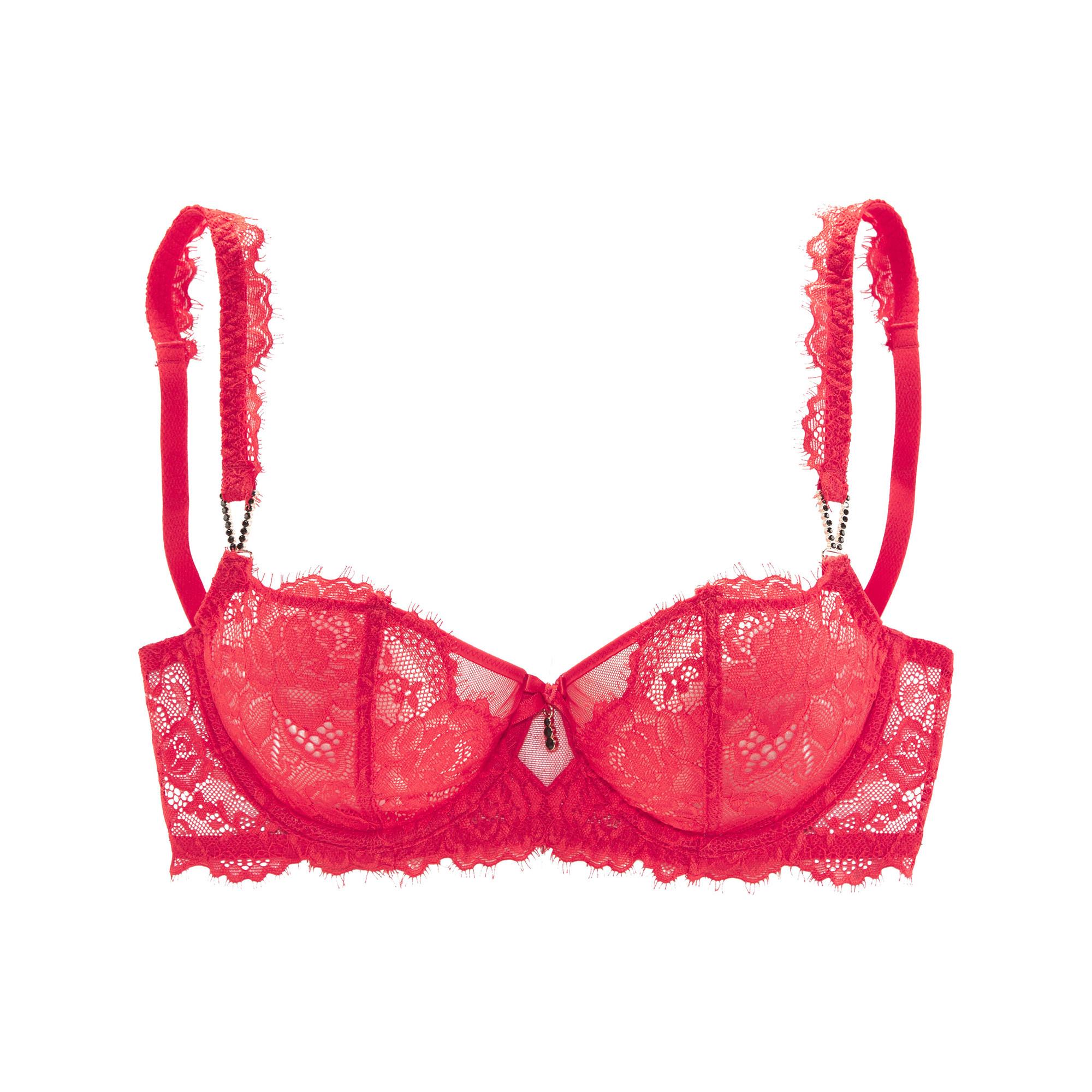 Ce soutien-gorge balconnet à armatures séduisant se distingue par des accessoires de bijoux extravagants et des bretelles en dentelle. Fabriqué en dentelle florale noble et transparente, il offre un magnifique dos avec un joli détail de bandes. Les bretelles réglables individuellement et la fermeture au dos assurent un ajustement parfait.