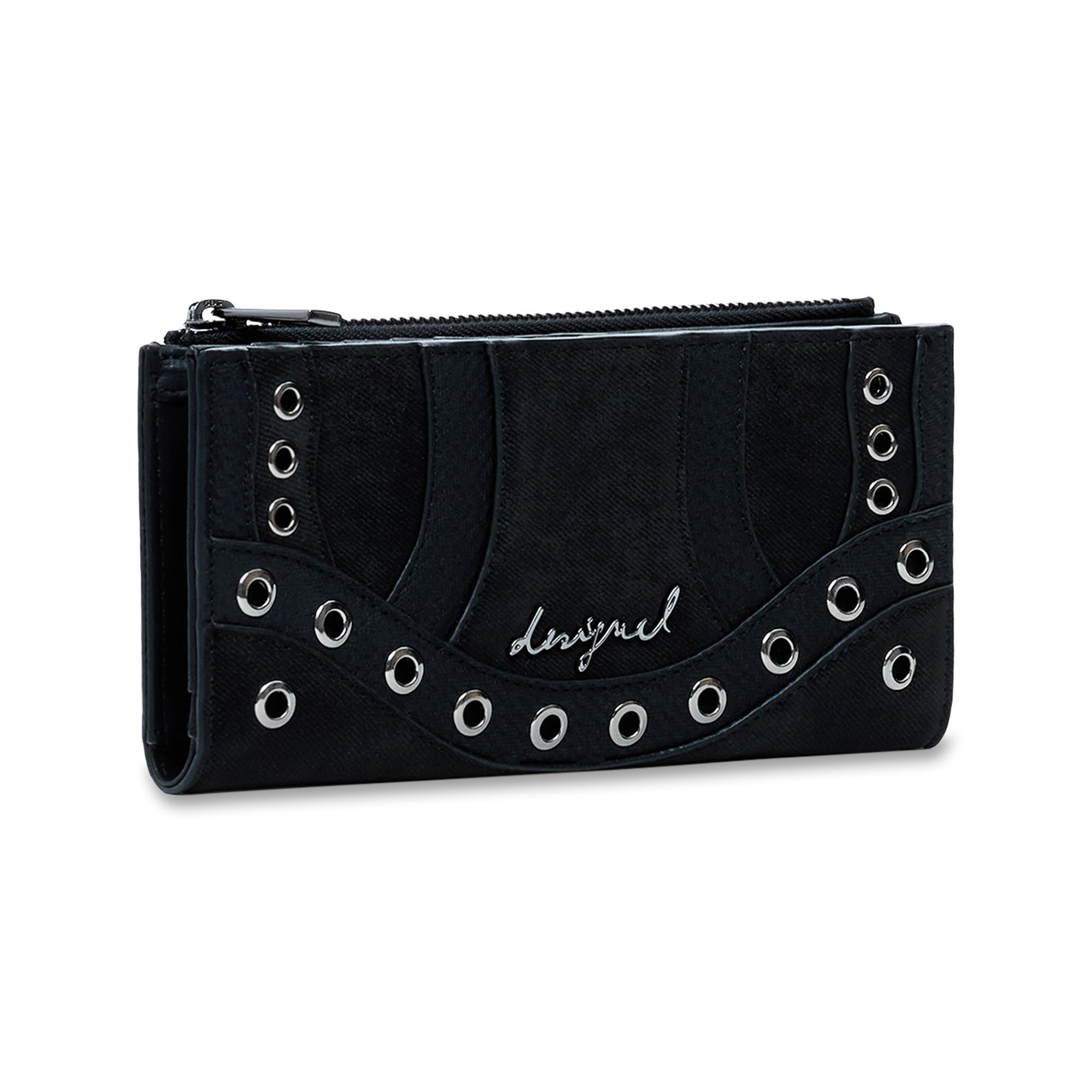 Ce portefeuille de taille moyenne de Desigual, confectionné en tissu aspect cuir, se distingue par son style patchwork et ses éléments métalliques. Il comprend une poche extérieure, plusieurs compartiments intérieurs ainsi qu’une fermeture éclair et un bouton-pression.