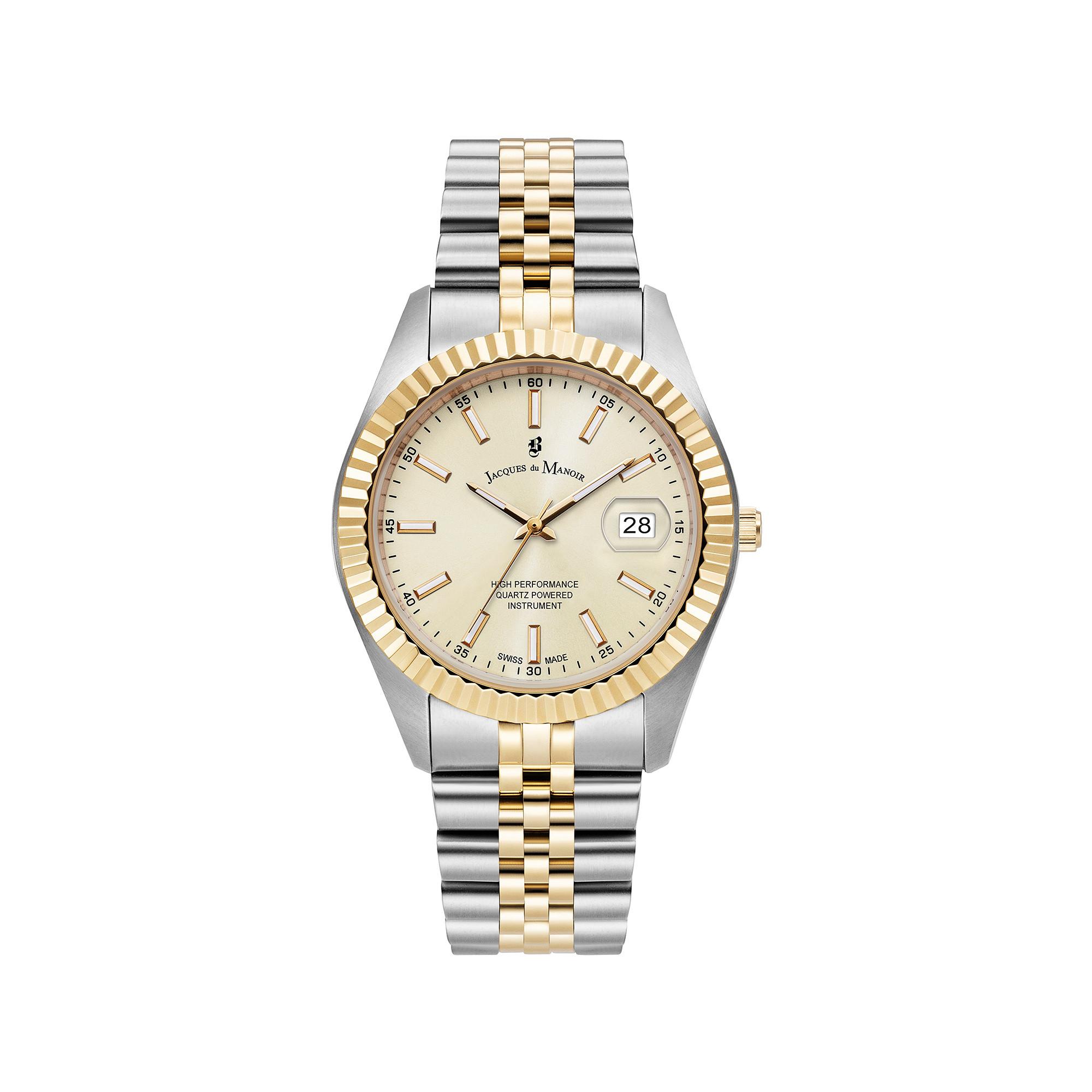 La montre pour femmes Jacques Du Manoir convainc par un boîtier en acier inoxydable de 40 mm, un cadran clair avec un affichage de la date et une fonction classique à 3 aiguilles. Le bracelet en acier inoxydable et le verre minéral confèrent à la montre de l’élégance et une aptitude à un usage quotidien et sont complétés par une étanchéité jusqu’à 5 ATM. Boîtier en acier inoxydable de 40 mm Bracelet en acier inoxydable avec un verre minéral Étanche à 5 ATM