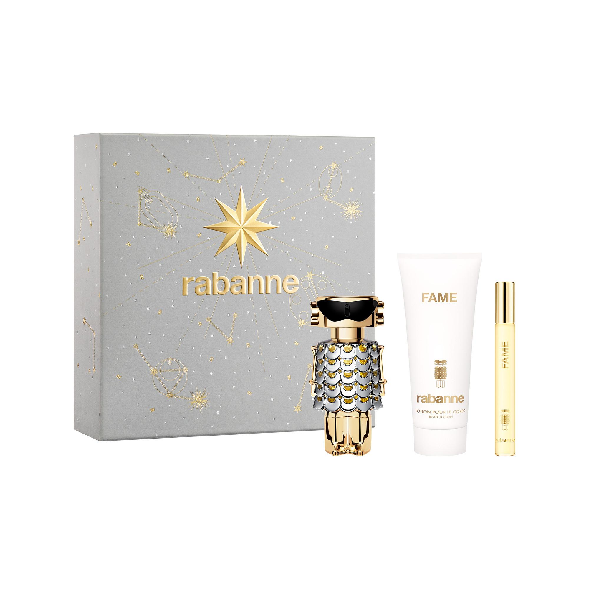 Pour les fêtes, découvrez l’étoile Rabanne qui vous est destinée. Chaque code iconique de la Maison devient une constellation extraordinaire, révélant son éclat unique et précieux. Offrez la magie Rabanne avec nos coffrets scintillants. Au cœur de cet écrin précieux, l’étoile dorée de la maison éclaire les fêtes d’un éclat inoubliable. Découvrez Fame Eau de Parfum 50ml, la Lotion Corps 100ml et le Travel Spray 10ml pour des fêtes éclatantes.