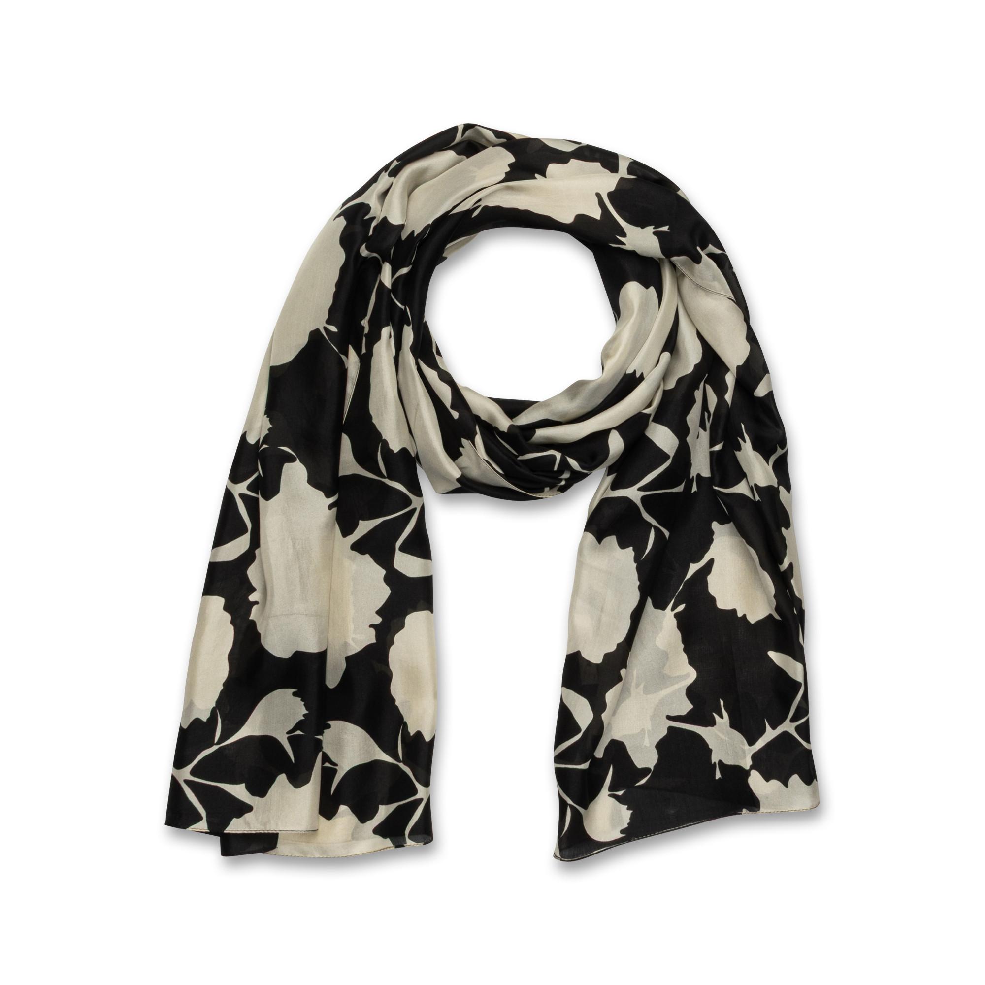 Cette écharpe classique est fabriquée à partir de 100% soie, offrant une sensation luxueuse et un drapé élégant. C'est un accessoire polyvalent adapté à diverses occasions.