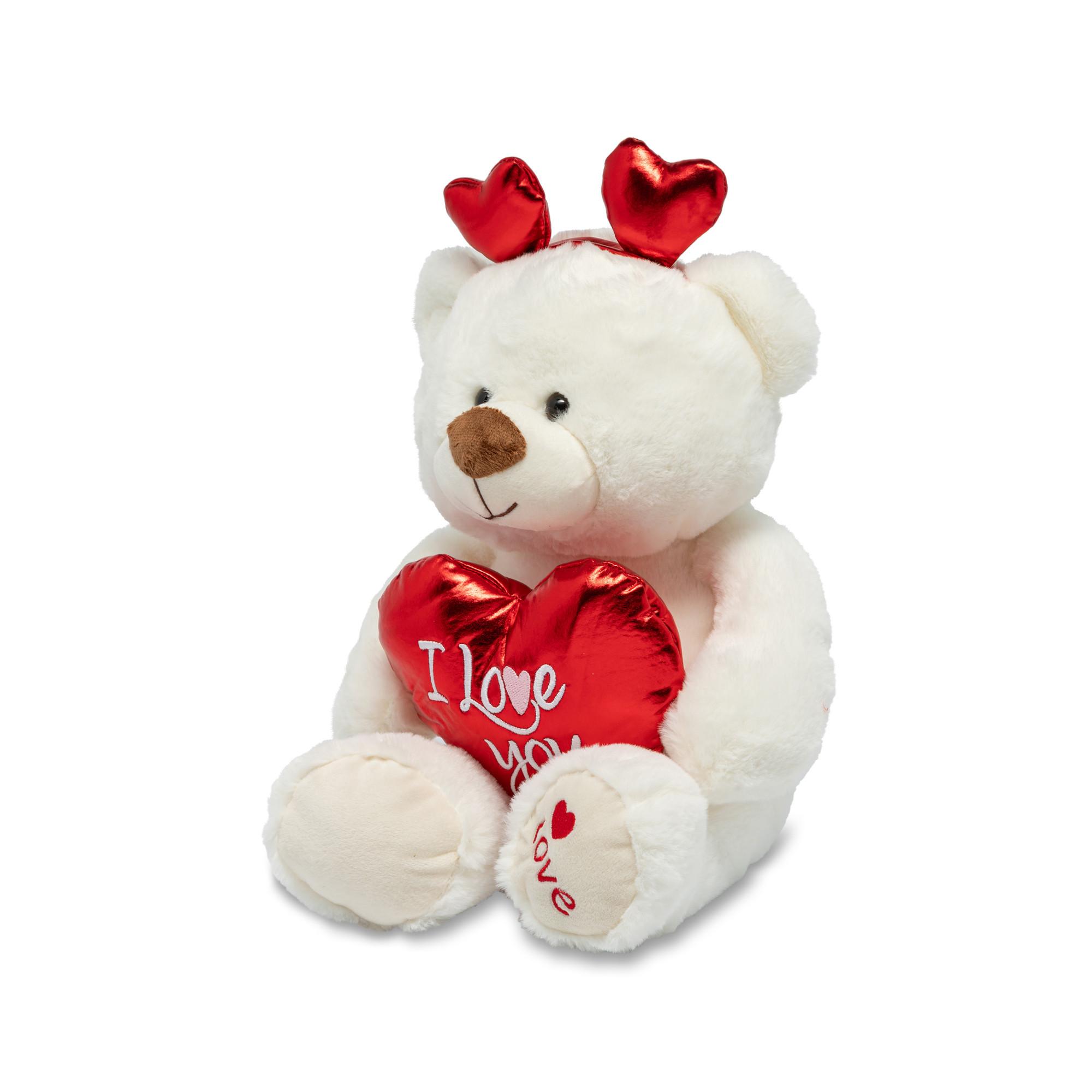 L’ours en peluche blanc avec un cœur est une idée de cadeau charmante pour des moments spéciaux. L’ours mignon tient un cœur avec l’inscription « I love you » et transmet ainsi un message clair et émotionnel. Avec une hauteur d’environ 30 cm et sa matière en peluche particulièrement douce, l’ours invite à se blottir et convient également parfaitement en tant que décoration. Que ce soit pour la Saint-Valentin, un anniversaire ou simplement comme un petit message d’amour entre-temps – cet ours en peluche garantit de faire rayonner les yeux.