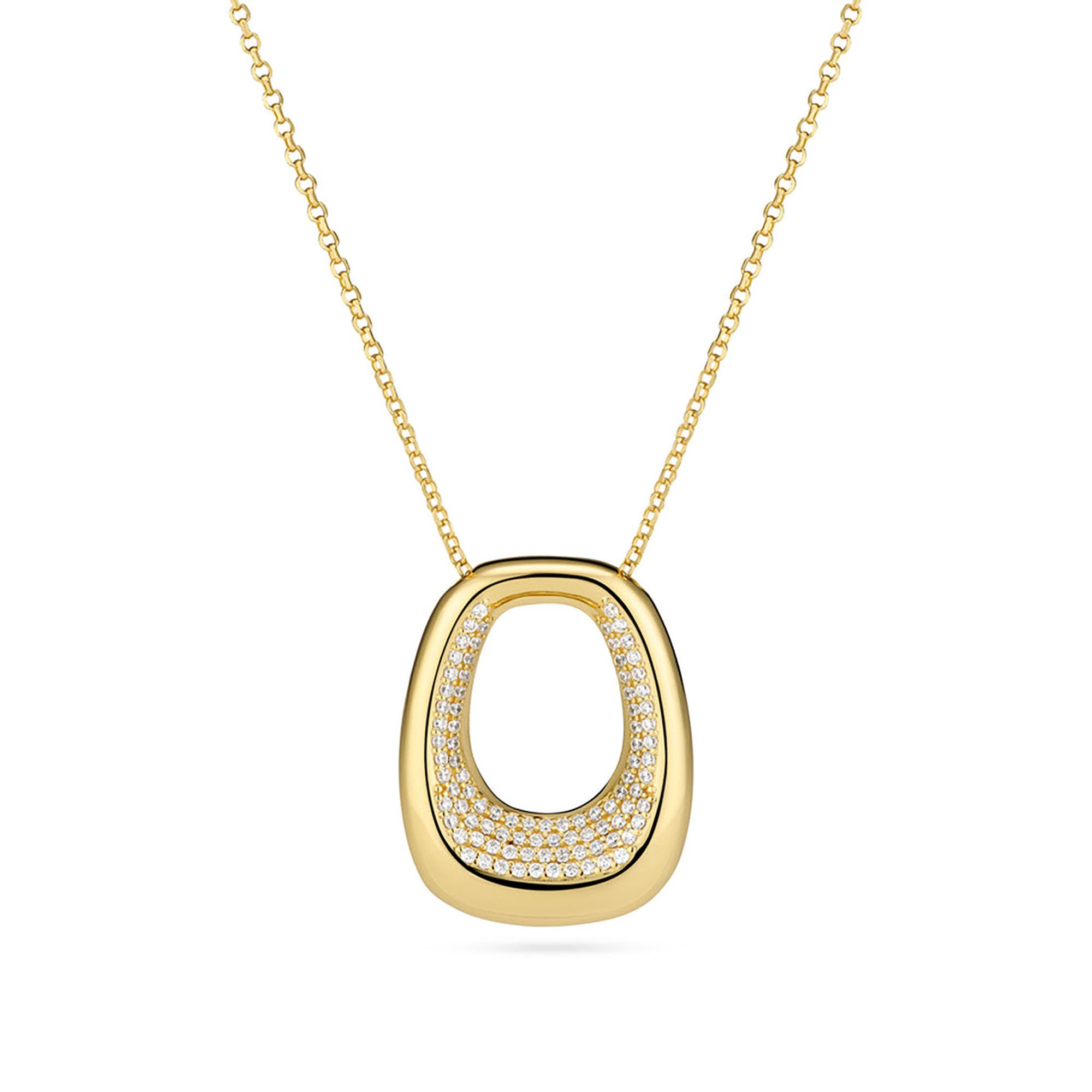 Collier en argent sterling 925 plaqué or 18 carats avec une surface polie, serti de zirconiums blancs taillés en facettes pour un design luxueux et éclatant. Un bijou élégant qui apporte une touche brillante à chaque tenue.