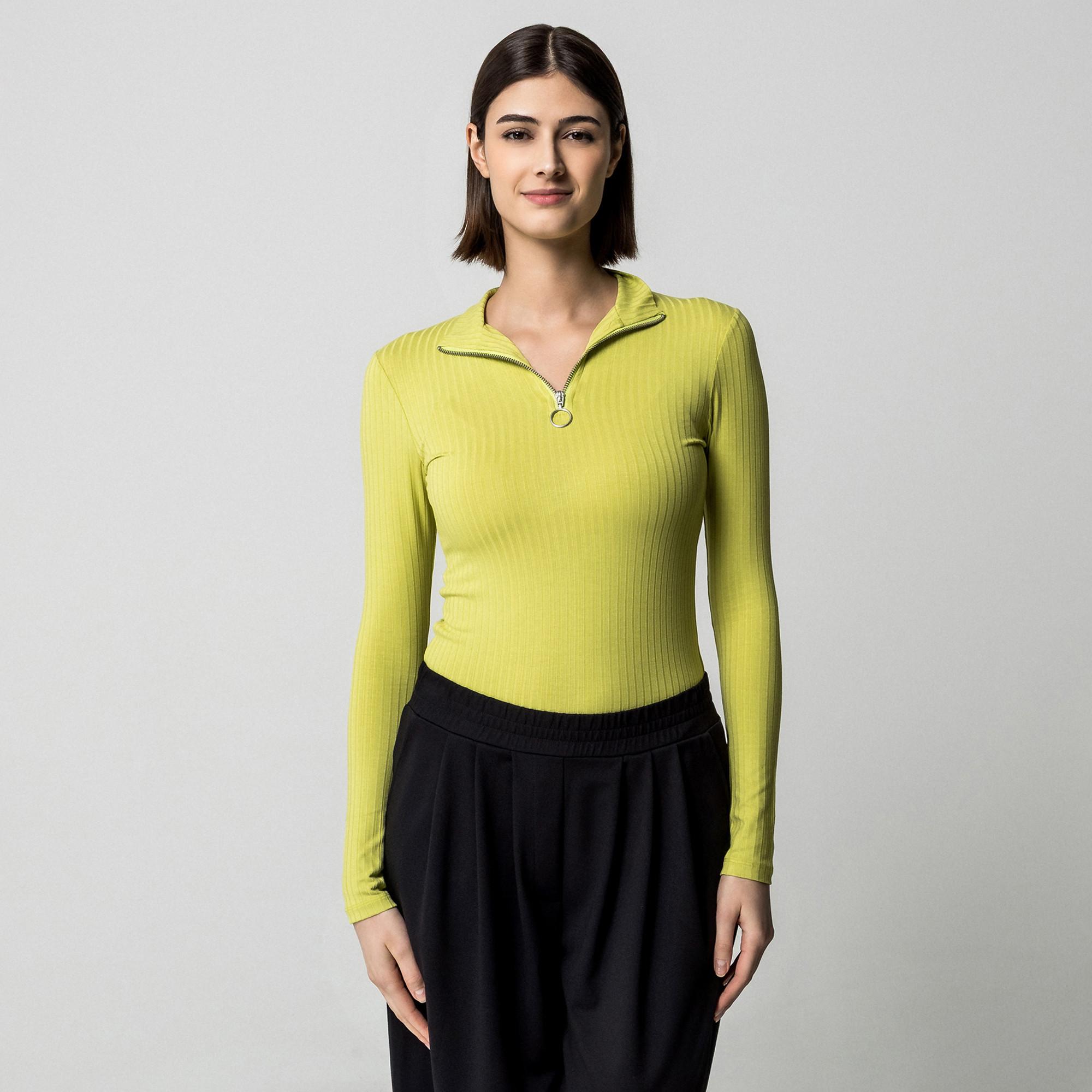 Ce T-shirt à manches longues présente une texture côtelée et une fermeture à quart de zip, offrant une option confortable et élégante pour un usage quotidien. Le design comprend un col montant, ajoutant une touche de sophistication à la silhouette décontractée.