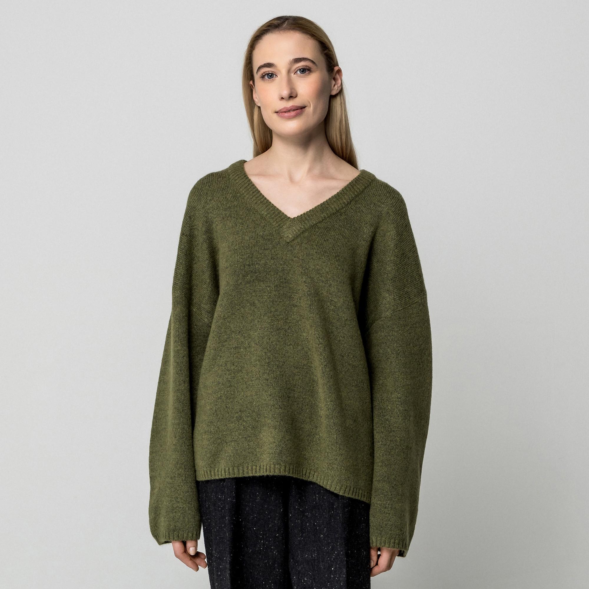 Ce pull présente un design classique à col en V, offrant un ajout polyvalent à toute garde-robe. Sa coupe confortable et ample le rend adapté à diverses occasions, offrant à la fois style et aisance. Ce pull tricoté est idéal pour les saisons d'automne et d'hiver.