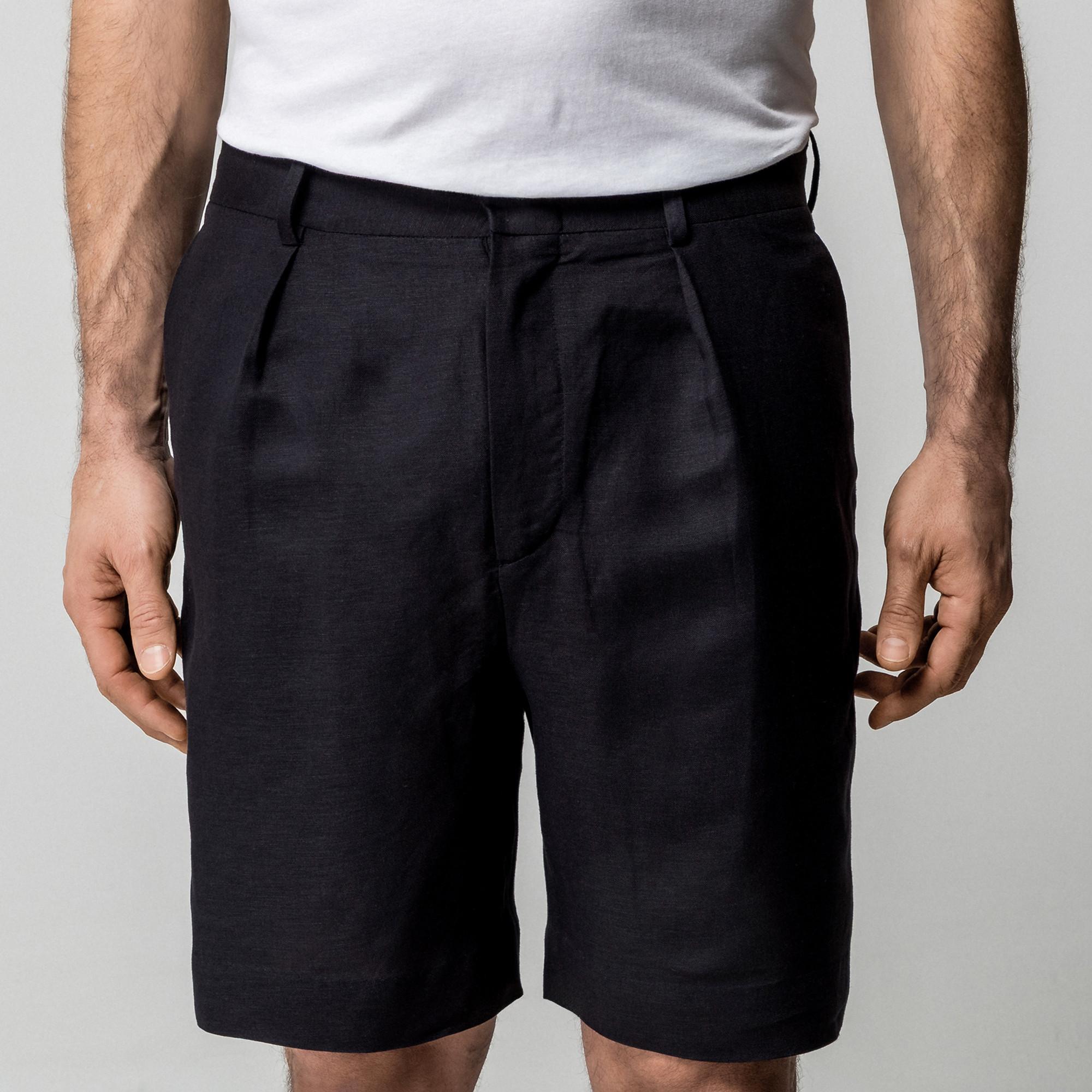 Ce short présente un design classique avec des plis, offrant une option raffinée mais confortable pour diverses occasions. La coupe ajustée et les lignes épurées contribuent à une apparence soignée.