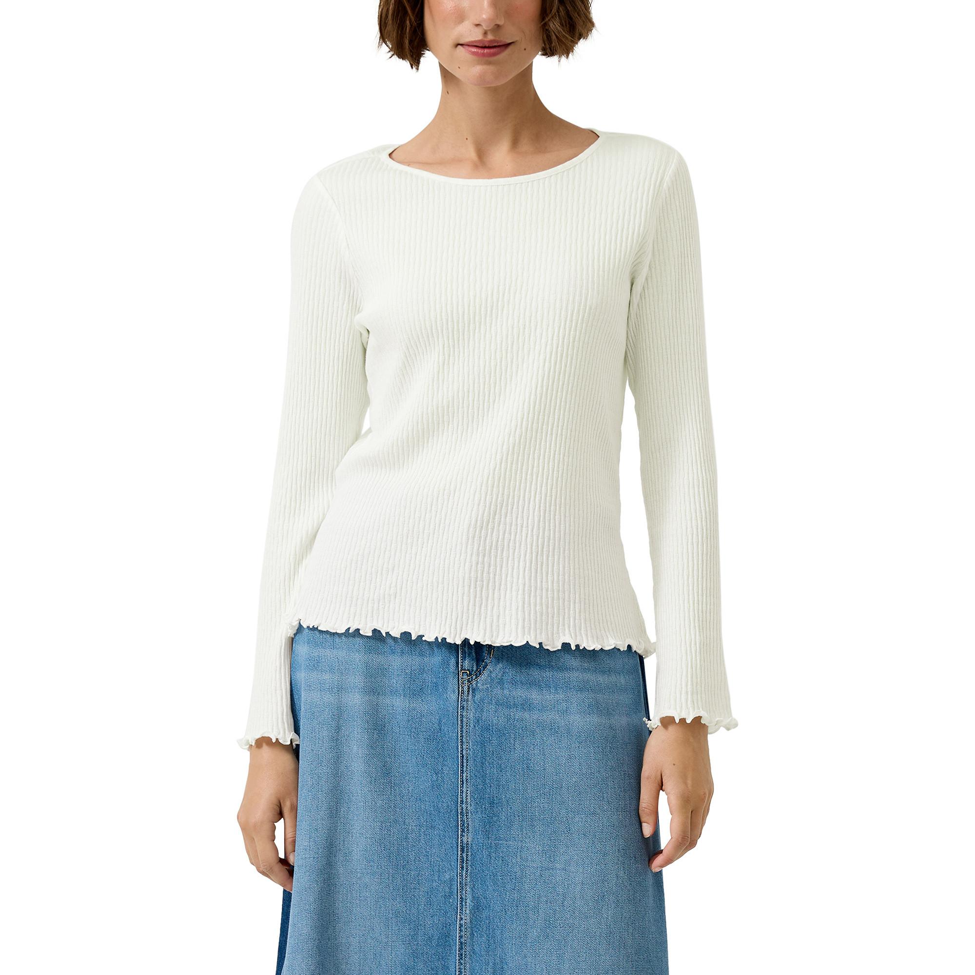 S. Oliver Red Label T-shirt côtelé à manches longues avec ourlet volanté