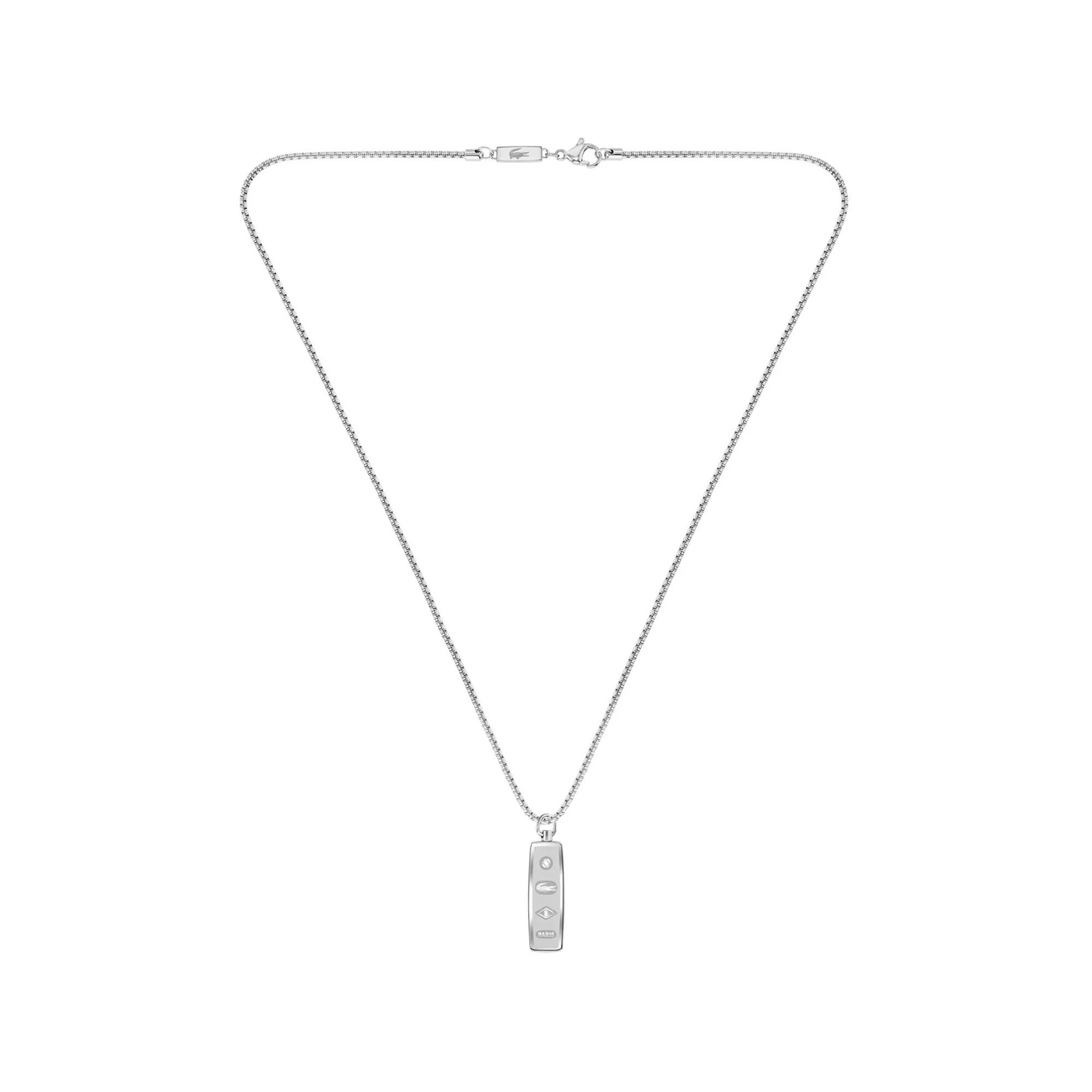 Le collier pour homme Lacoste District combine style sportif et détails emblématiques. Fabriqué en acier inoxydable, il se distingue par son pendentif réversible de 30 mm avec crocodile, balle de tennis et inscription Paris.