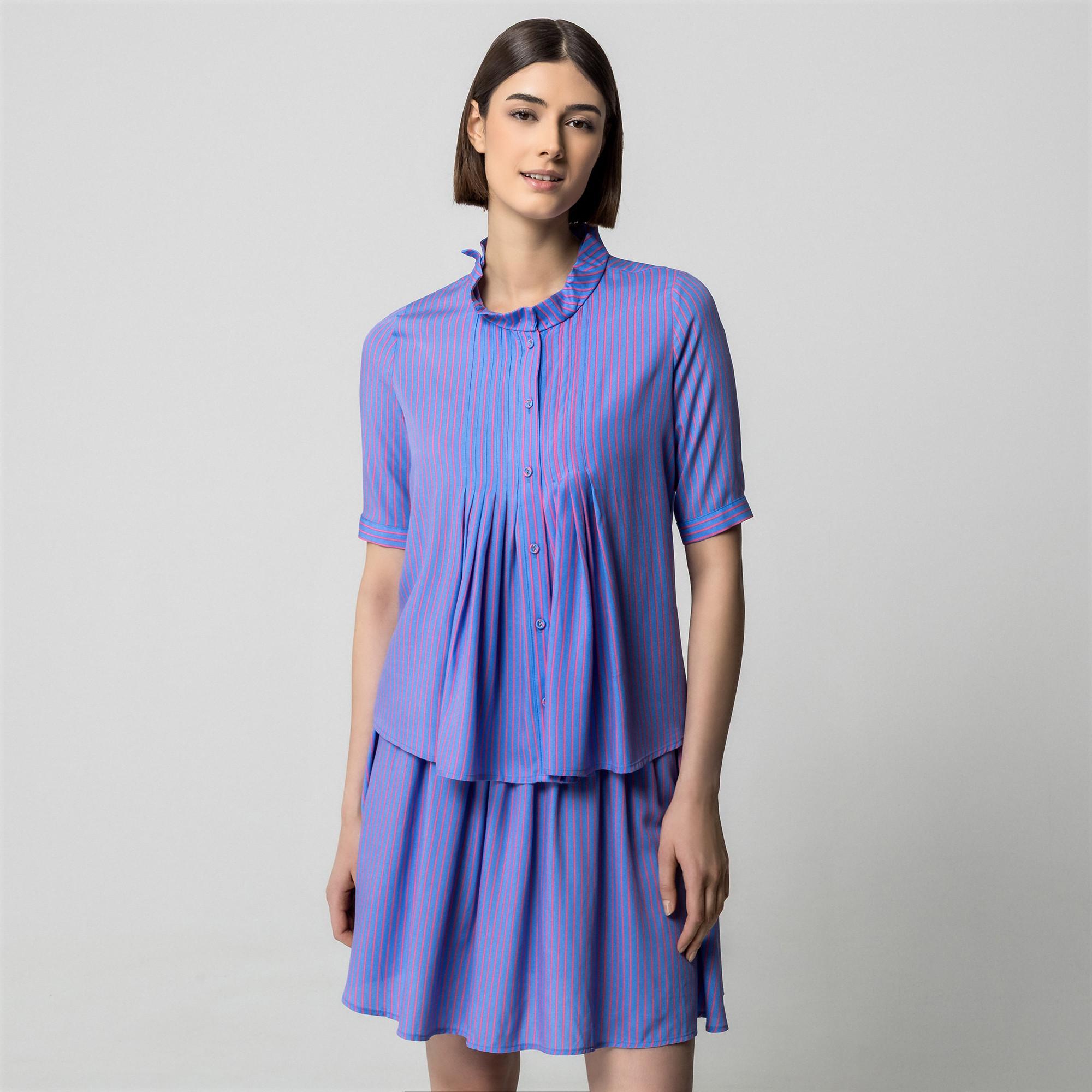 Manor Woman Chemisier Rayé avec Col Montant Volanté