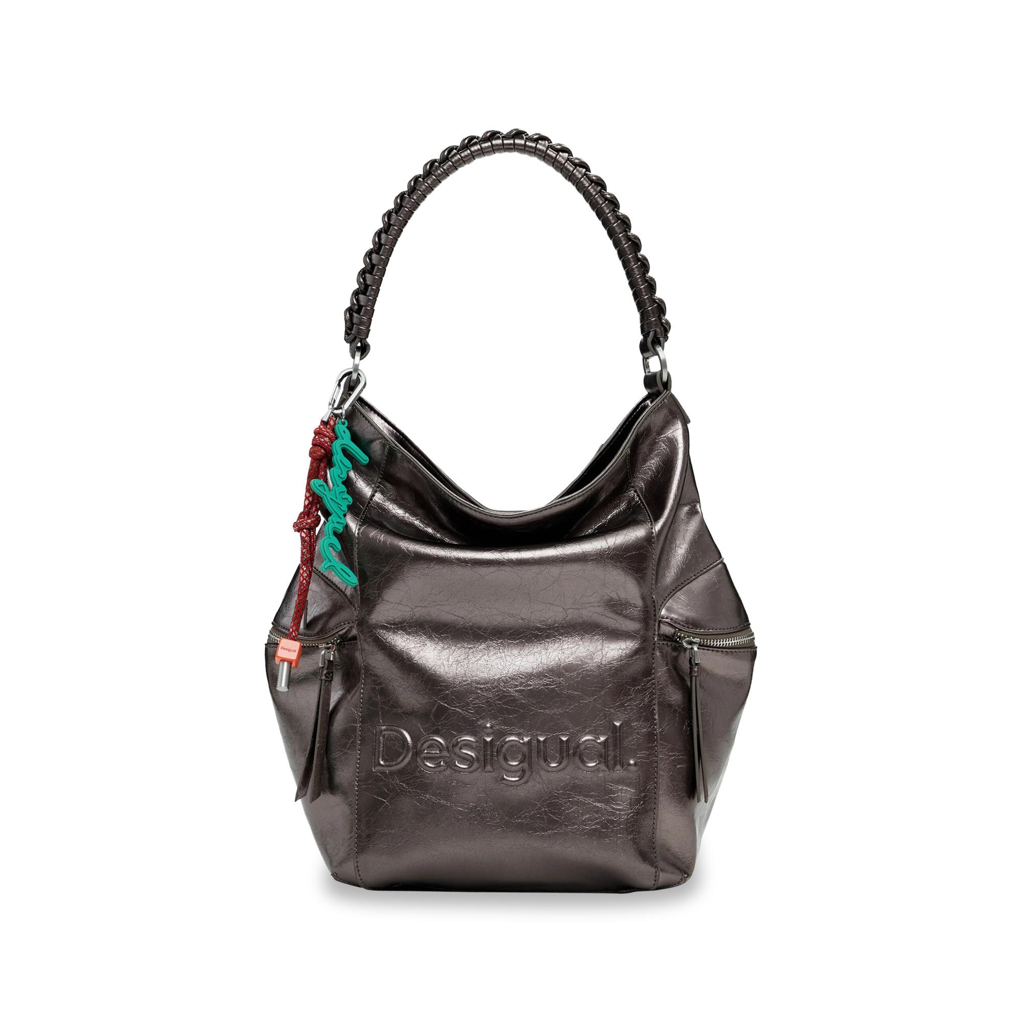 Ce grand sac à dos en effet cuir avec finition métallique allie fonctionnalité et design audacieux. Il comprend un logo en 3D, des poches latérales, une poche arrière extérieure, plusieurs compartiments intérieurs et des bretelles réglables. Avec une poignée tressée amovible, un porte-clés et une capacité de 13,08 litres (dimensions : 25,60 x 14,60 x 12 cm), il est parfait pour le quotidien et les loisirs.