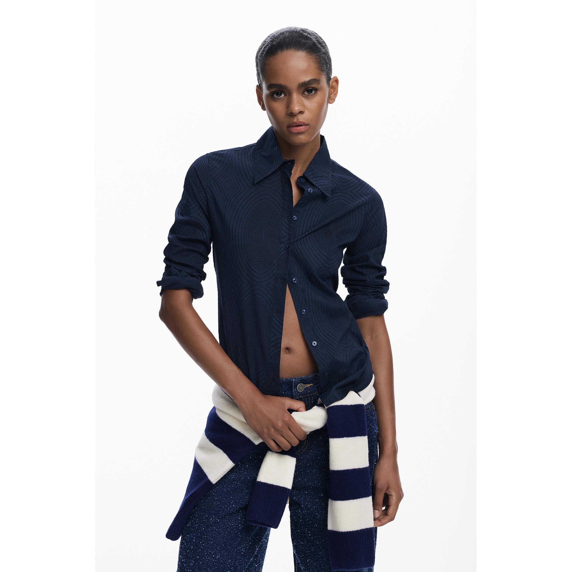 Cette blouse romantique de Desigual séduit par son imprimé floral et ses volants aux épaules et aux manches. Sa coupe droite avec encolure en V et patte de boutonnage crée une silhouette féminine. Confectionnée en viscose durable, elle allie style et respect de l’environnement.